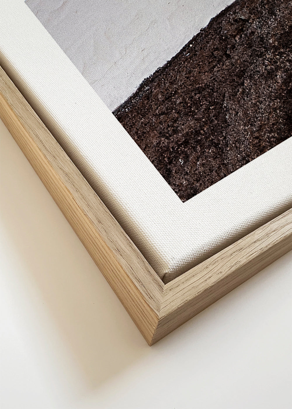 If you select the passepartout option, we will add the white matt board to the frame, and we will reduce the design of the work. For example, if you select a print size 20x28 in, with an oak colored frame and passepartout, we will reduce the design of the print to the previous size (16x20 in). In this way, it will adapt perfectly to the inside window of the passepartout.