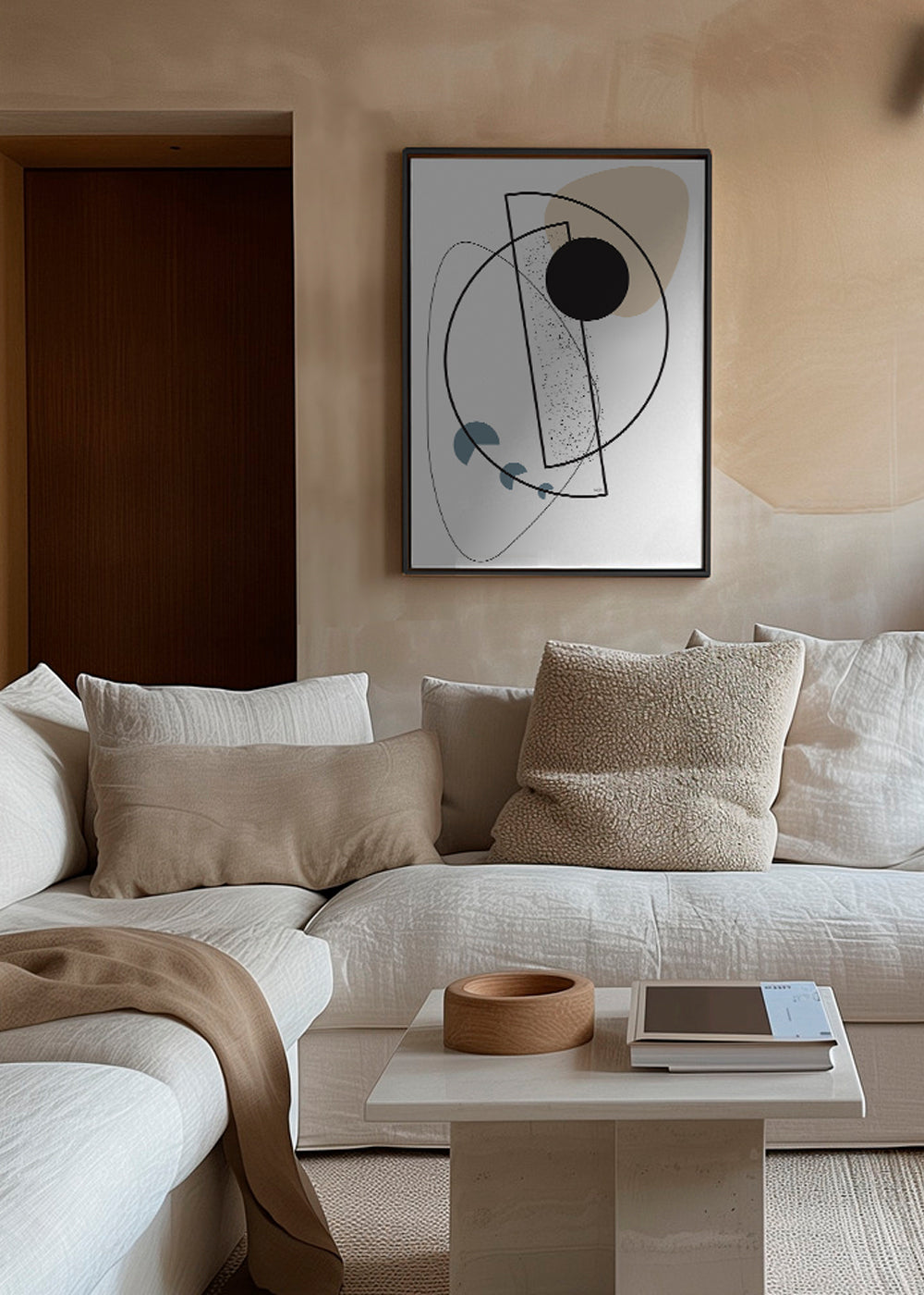This poster from the geometric wall art and prints collection, from the Linda Gobeta collection, with tones of white, and with vertical layout. This piece with abstract shapes is perfect for pairing with other abstract art and geometric prints. Walls full of creativity.