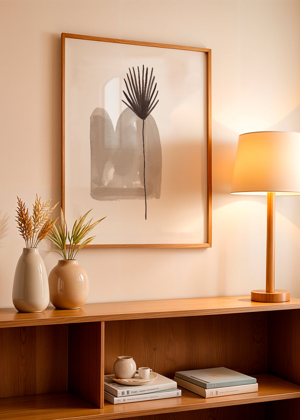 This design inspired by the collection of palm tree prints, by Kruth Design, with touches of brown, and vertical layout. Create a vertical garden by pairing this piece with other prints with flowers and plants. Forget about boring walls.