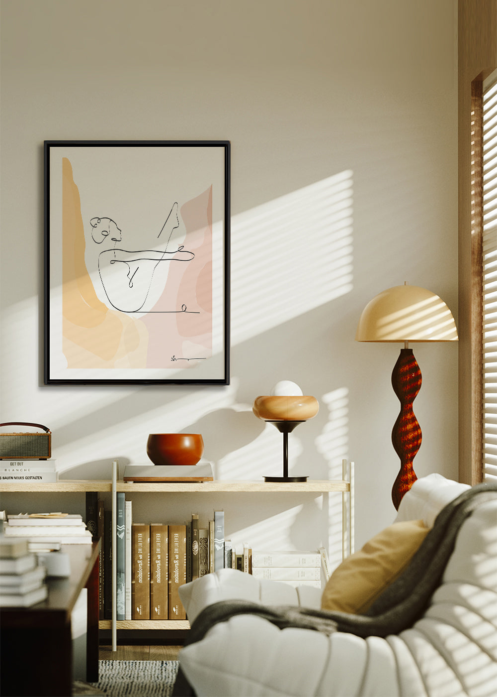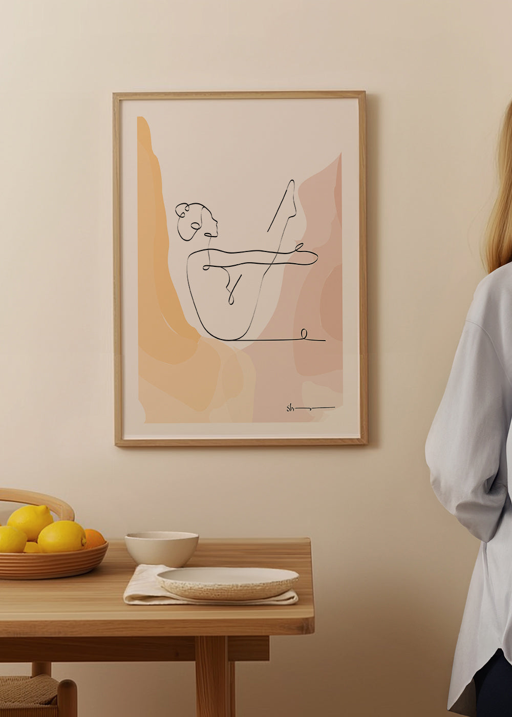 This poster from the line art prints series, created by Yoga in Art, in yellow shades, and to hang in vertical position. Illustrated posters are the perfect way to fill your walls with creativity. The final touch you were looking for.