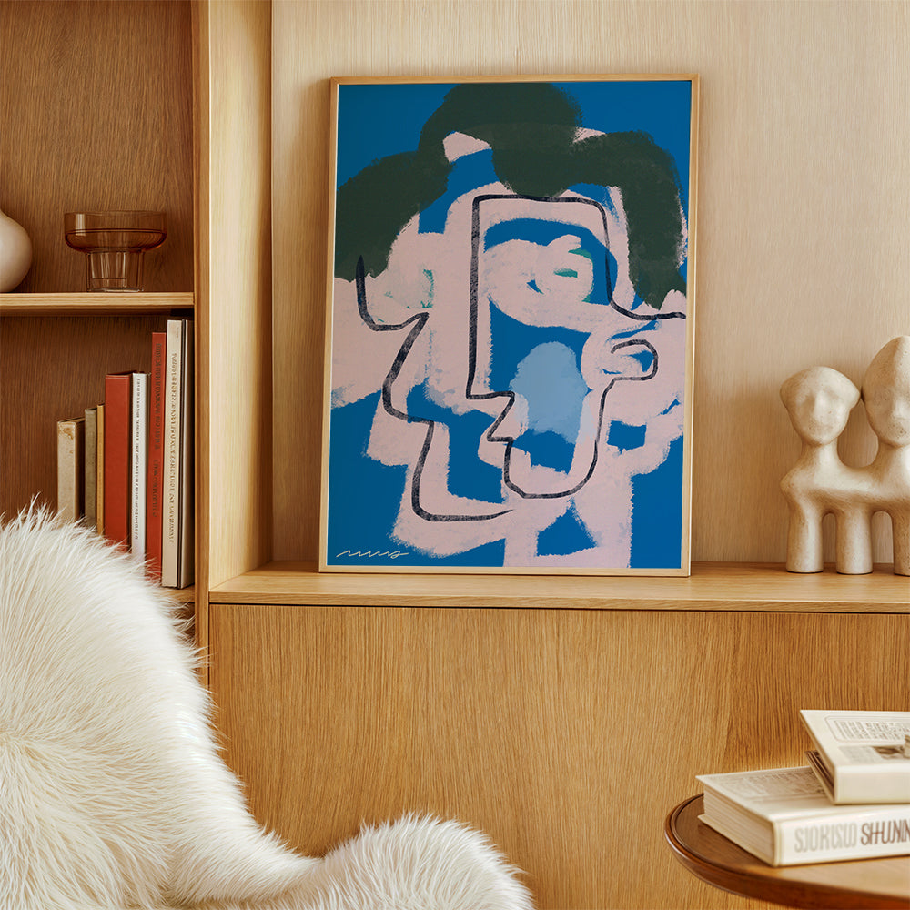 This poster inspired by the collection of illustration wall art, created by Vaanzaal, in tones of blue, and with vertical layout. Illustrated posters are the perfect way to fill your walls with creativity. A gorgeous design worthy of your decor.