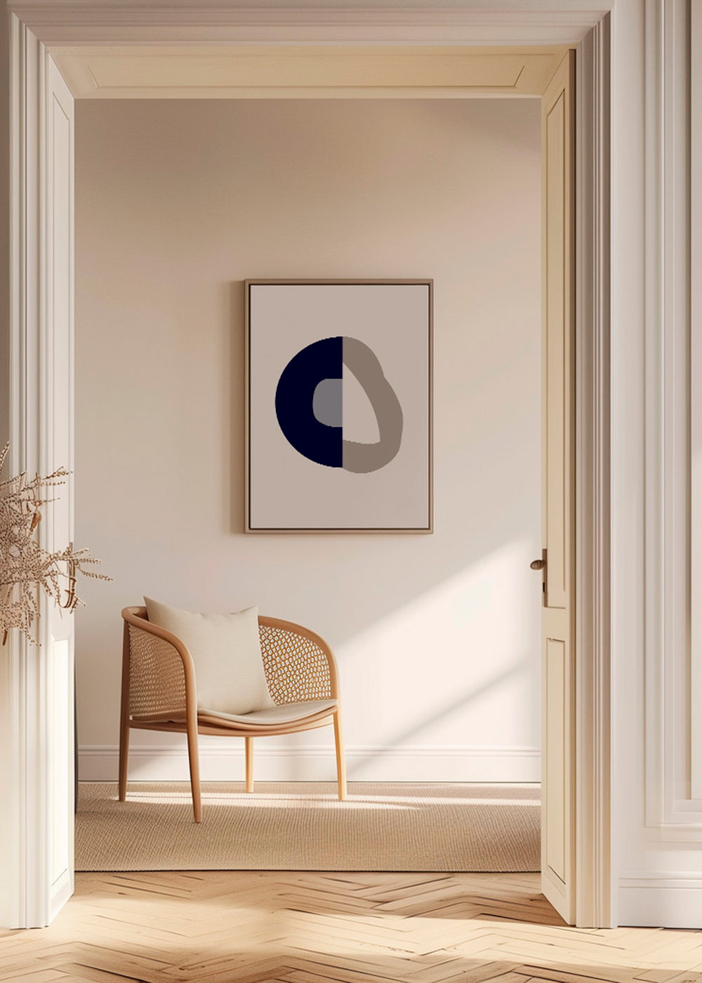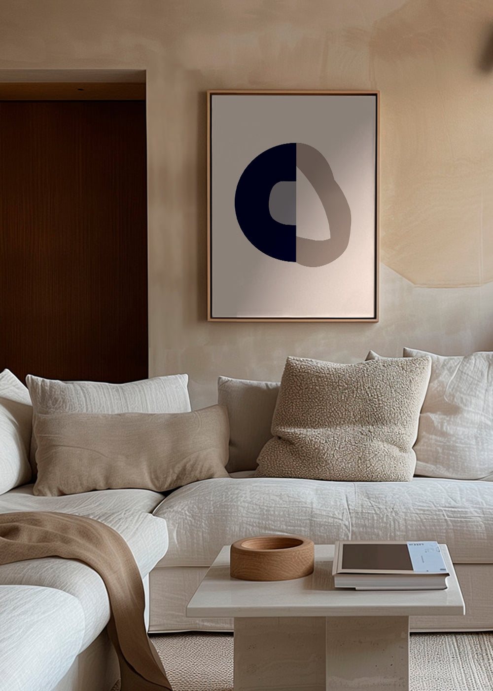 A poster from the geometric wall art and prints collection, created by Anna Mainz, in blue shades, and with vertical layout. Geometric prints are a great option for decorating modern, cutting-edge spaces. Choose the size that best fits your decor.