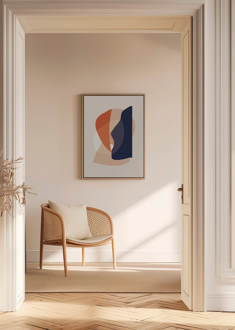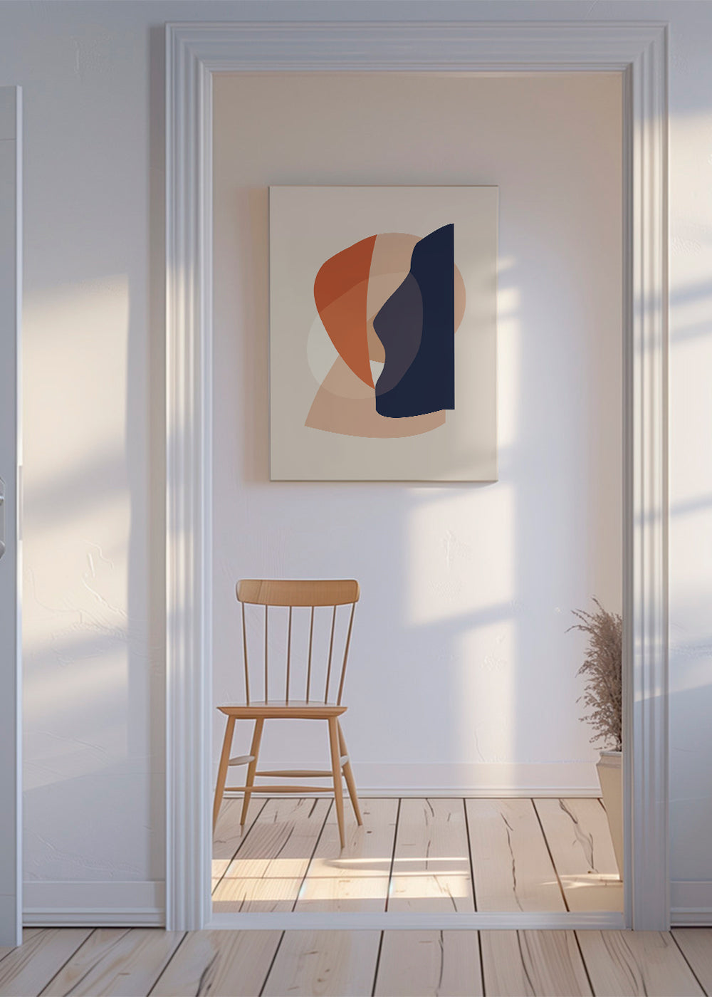 Beautiful print from the geometric wall art and prints category, by Anna Mainz, in tones of blue, and with vertical layout. Geometric art is an elegant style to decorate the walls of your home with. Elegance inspired by art.