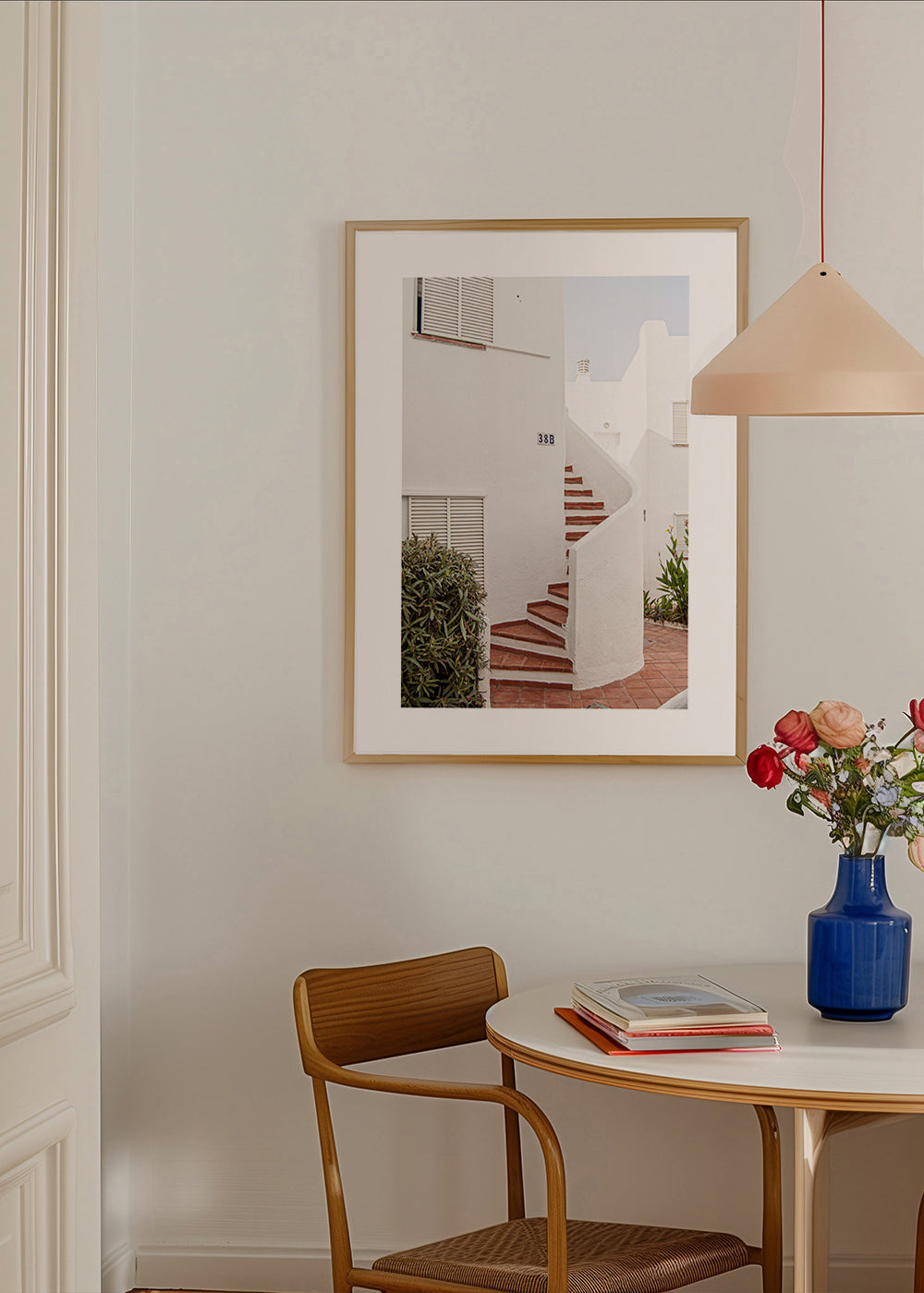 All our frames are manufactured in Spain. The white, black and oak frames are made of Ayous wood, and the oak ones are veneered in oak, while the metallic ones are made of aluminum.