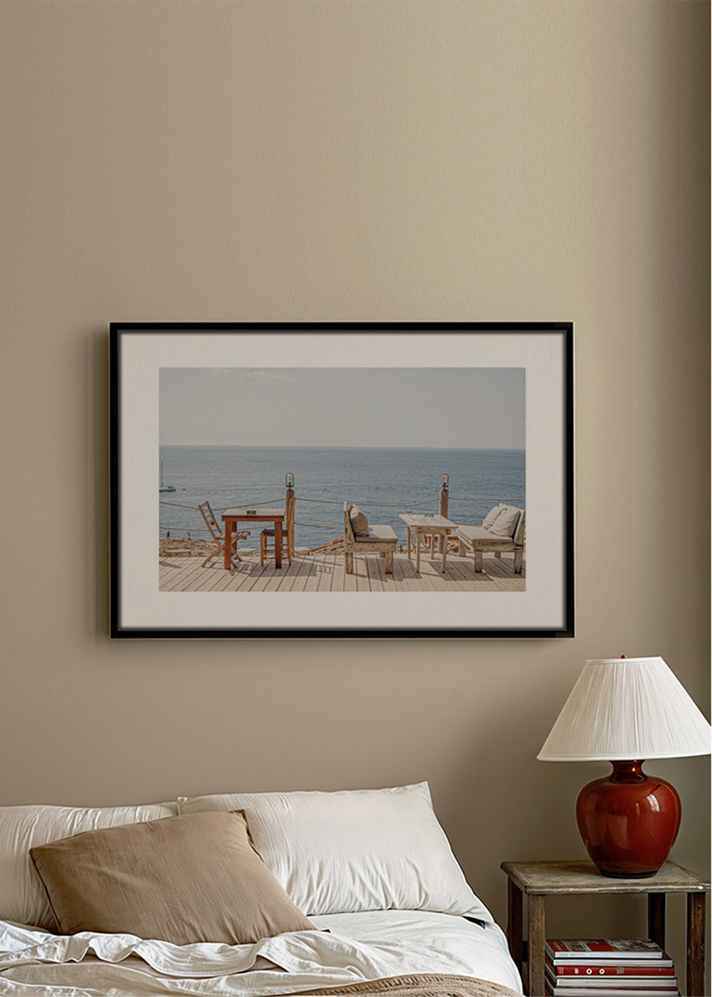 This poster inspired by the collection of beach wall art, from the mind of Ferran Feixas, in blue shades, and in horizontal position. Photography is an art form that can change any decoration. Adding photo prints to your interior design modernises any room. It's always a good time to freshen up your home.