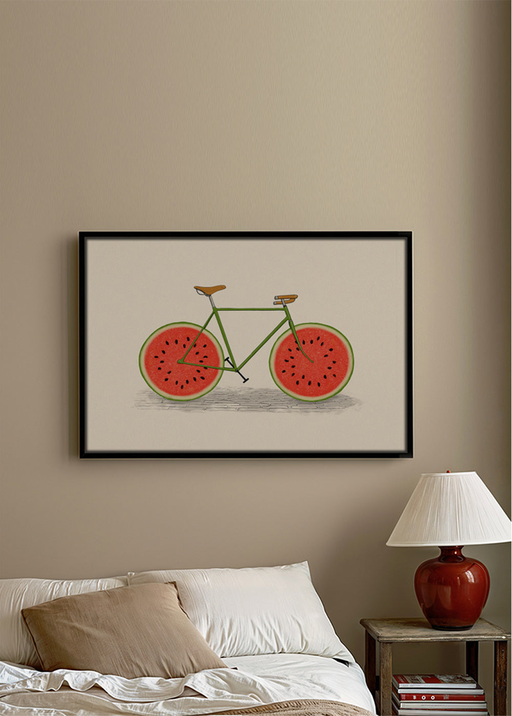 A poster from the cycling posters collection, from the Florent Bodart collection, with tones of red, and horizontal layout. A retro poster you can pair with other vintage-style prints for an original touch in the home. The final touch you were looking for.