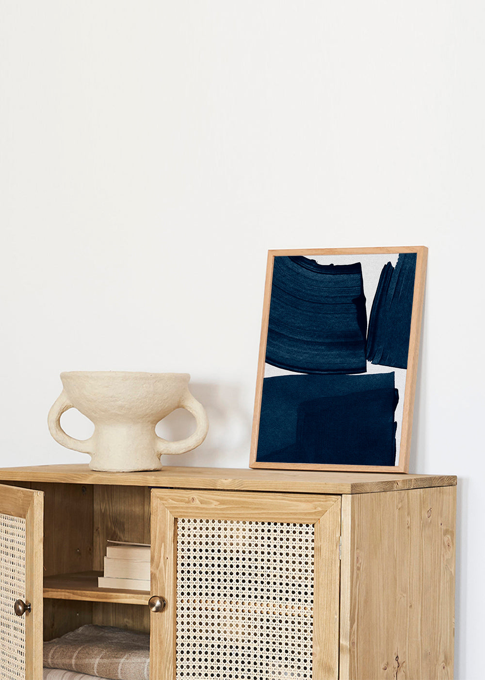 Beautiful piece from our brush posters series, created by Orara Studio, in tones of blue, and with vertical layout. Geometric art is an elegant style to decorate the walls of your home with. The difference is in the details.