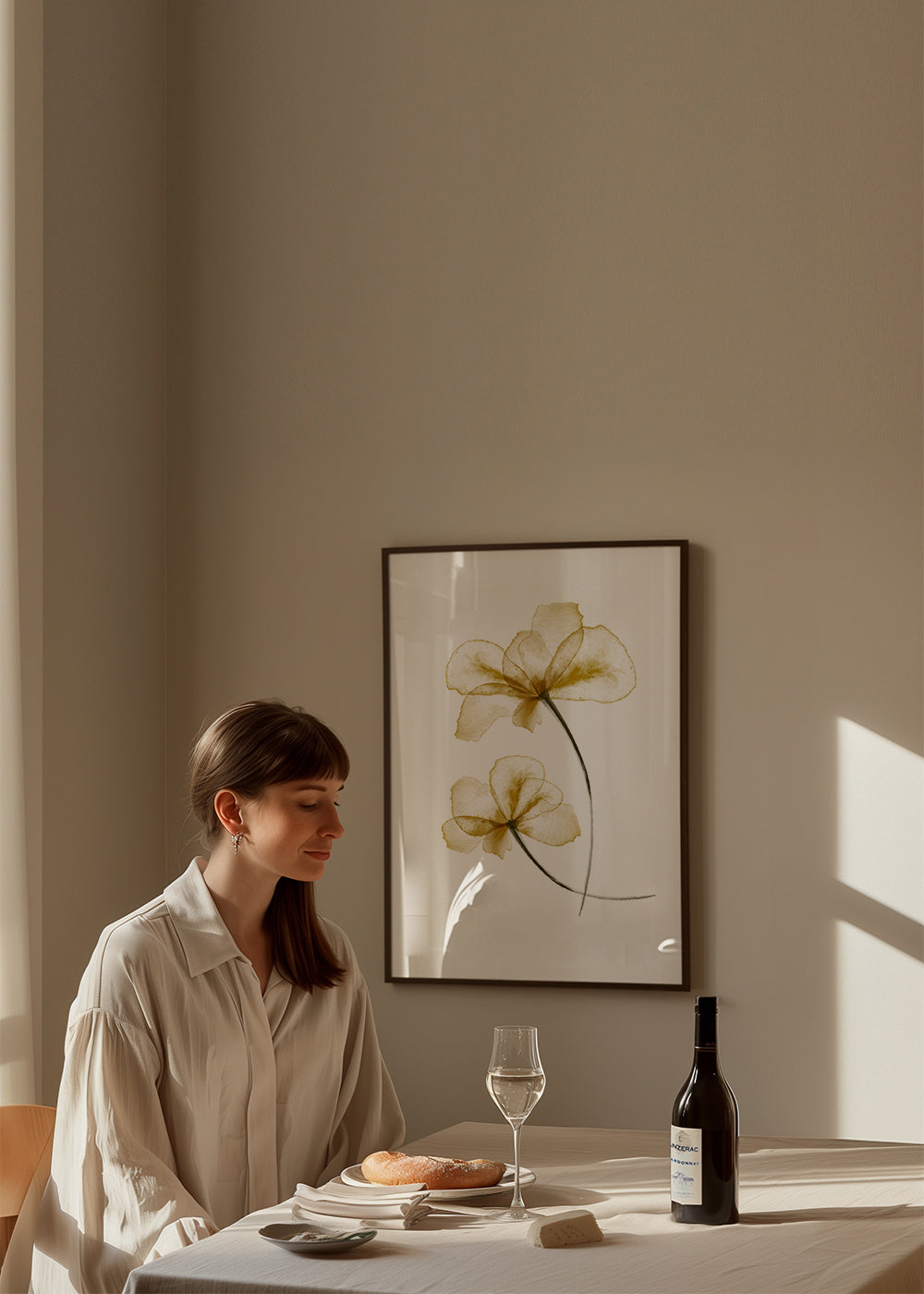 A print from our selection of botanical prints and wall art, with touches of yellow, and with vertical layout. Illustrated posters are the perfect way to fill your walls with creativity. Give your rooms a fresh look with art.