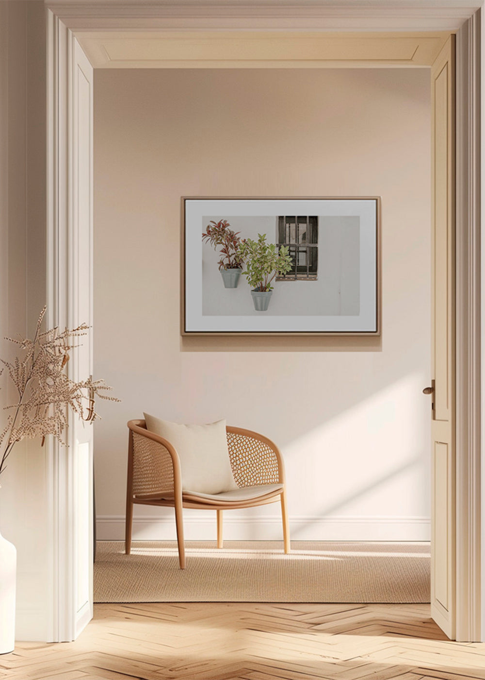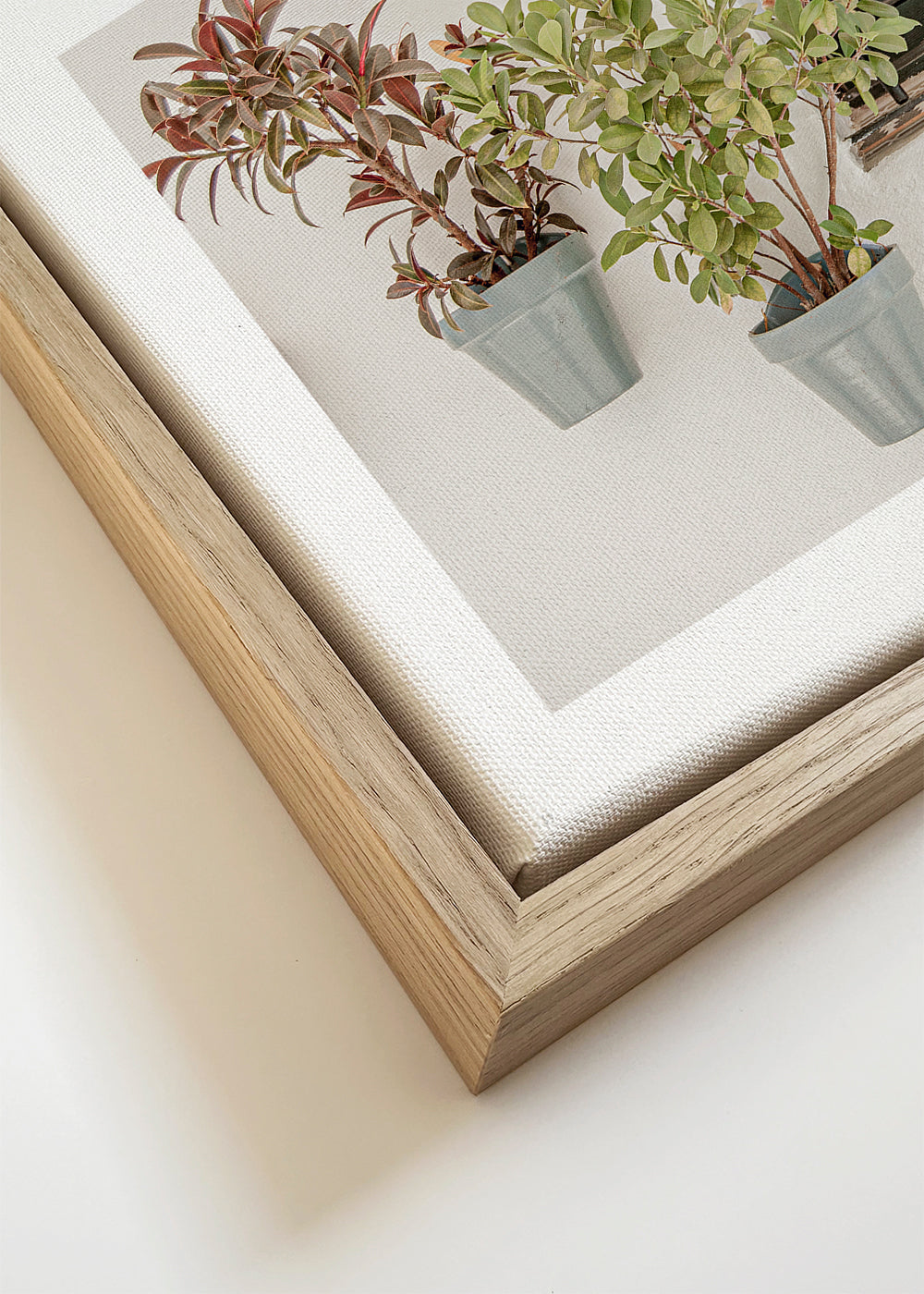 If you select the passepartout option, we will add the white matt board to the frame, and we will reduce the design of the work. For example, if you select a print size 20x28 in, with an oak colored frame and passepartout, we will reduce the design of the print to the previous size (16x20 in). In this way, it will adapt perfectly to the inside window of the passepartout.