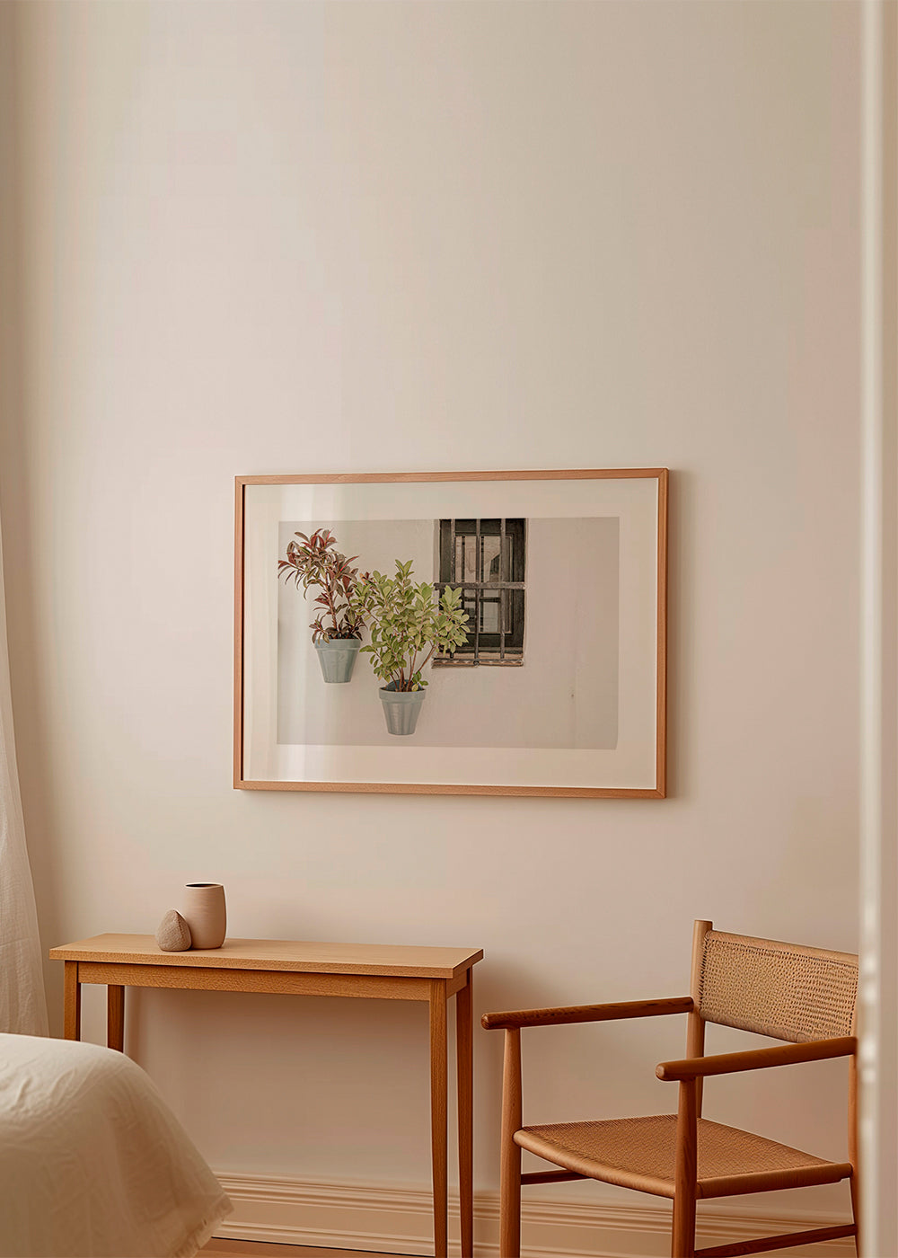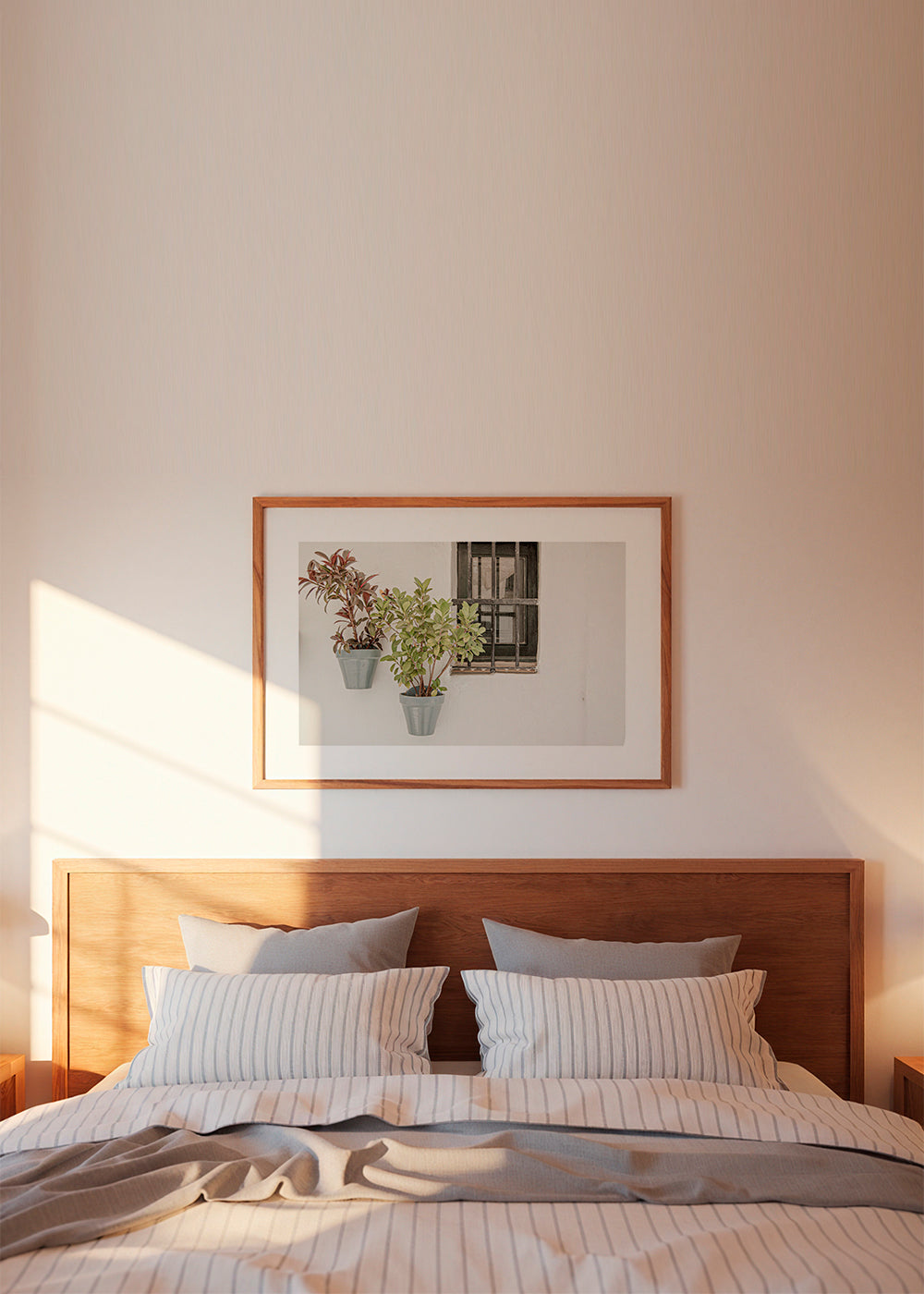 All our frames are manufactured in Spain. The white, black and oak frames are made of Ayous wood, and the oak ones are veneered in oak, while the metallic ones are made of aluminum.