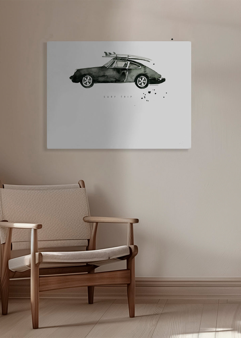 A design in the style of our cars posters and wall art, made by Mercedes López Charro, with black and white, and with horizontal layout. Illustrated posters are perfect for pairing with minimalist and abstract art. Walls decorated with prints are the ultimate.