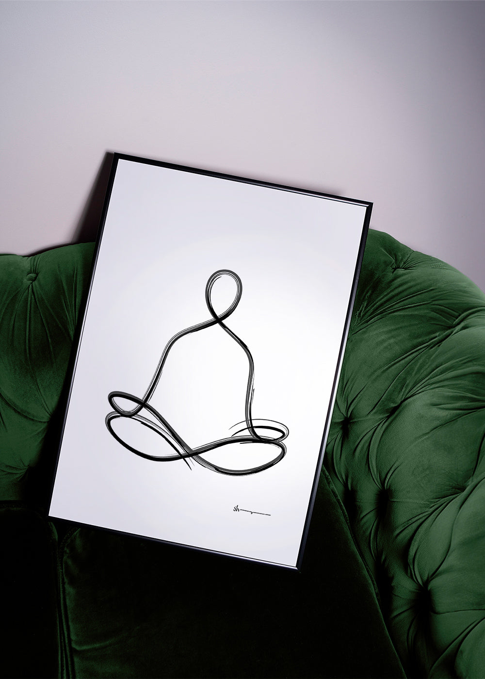 A print from our yoga wall art collection, made by Yoga in Art, with touches of black and white, and perfect to hang vertically. Illustrated posters are perfect for pairing with minimalist and abstract art. Build a home full of design and creativity.