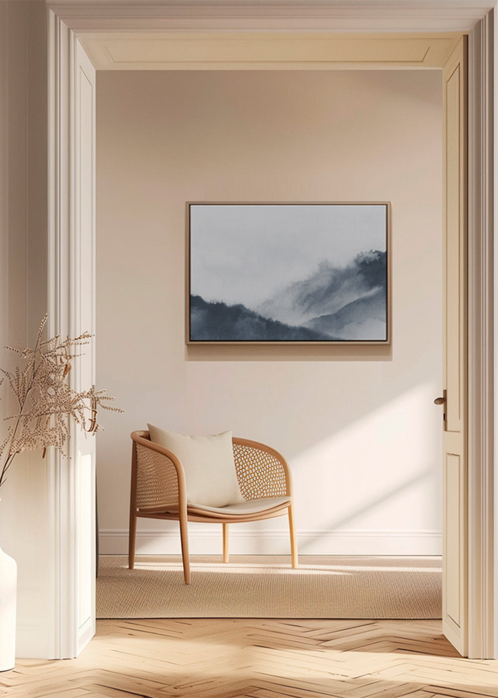 Beautiful print in the style of our landscape wall art, from the Nouveau Prints collection, in tones of grey, and in horizontal position. Landscape decoration brings a breath of fresh air to any room. Choose the size that best fits your decor.