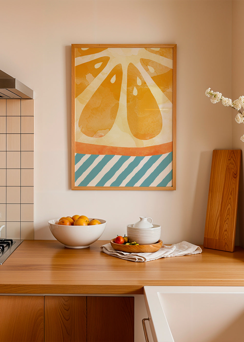 A piece in the style of our fruit posters, created by Orara Studio, with tones of blue, and to hang in vertical position. A design for the foodies in the house. Decorate your kitchen with prints; The final touch you were looking for.