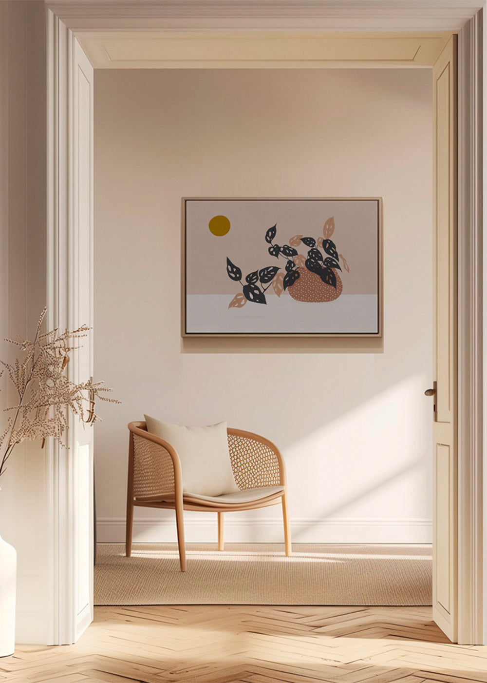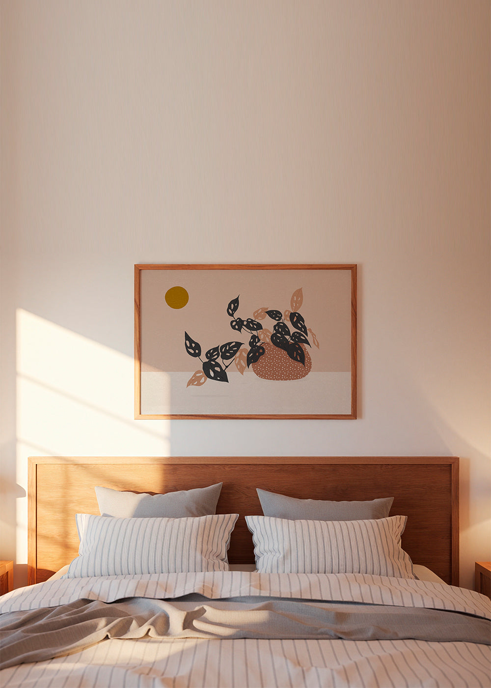 This print from the palm tree prints series, created by Kookie Pixel, with tones of yellow, and with horizontal layout. Nature is one of the best pieces of art around, don't you think? Combine our landscape prints for decoration that conveys freshness. Free your creative spirit, decorate your walls with art.