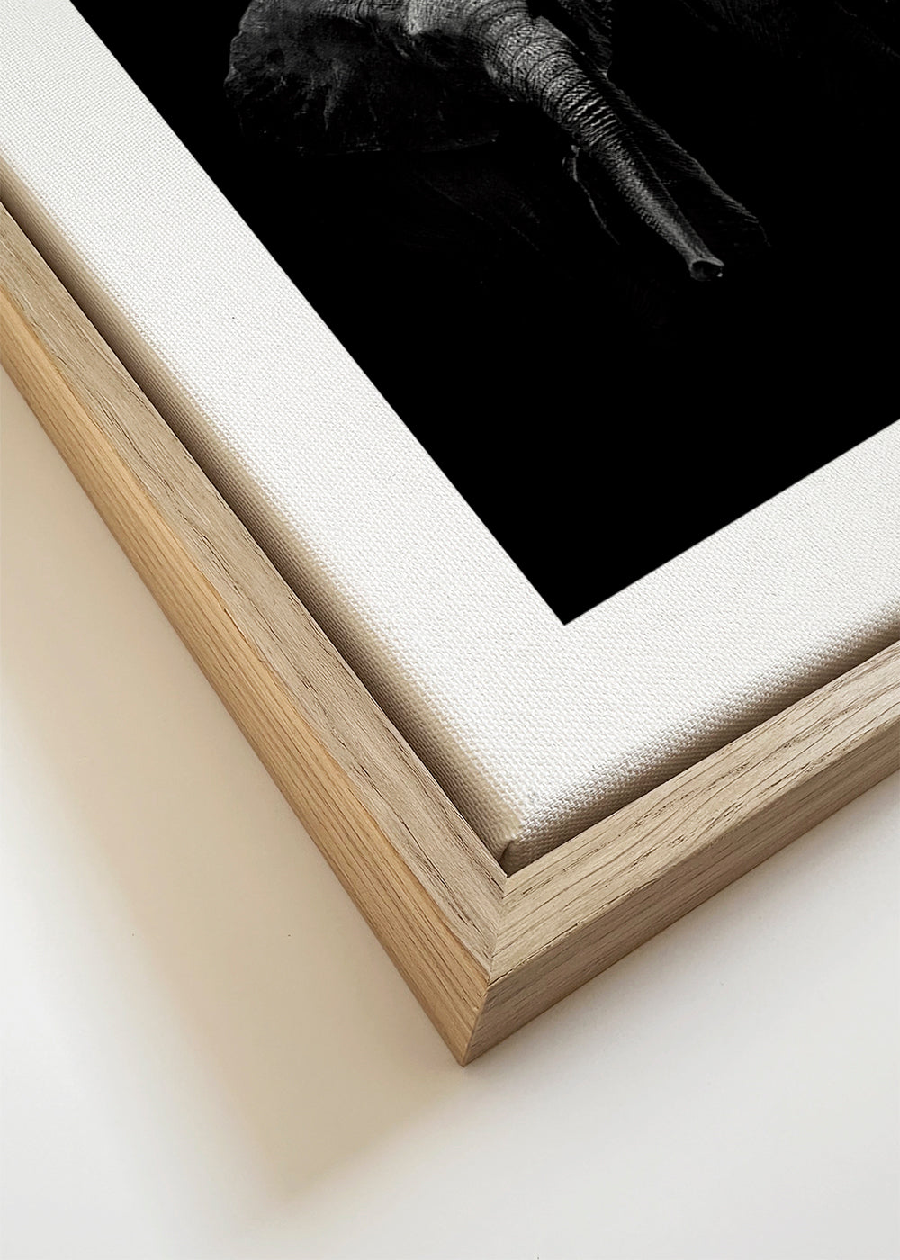 We work with solid wood and aluminium frames. All framed artworks are shipped already assembled and ready to hang. The front protection is made of high-clarity acrylic glass.