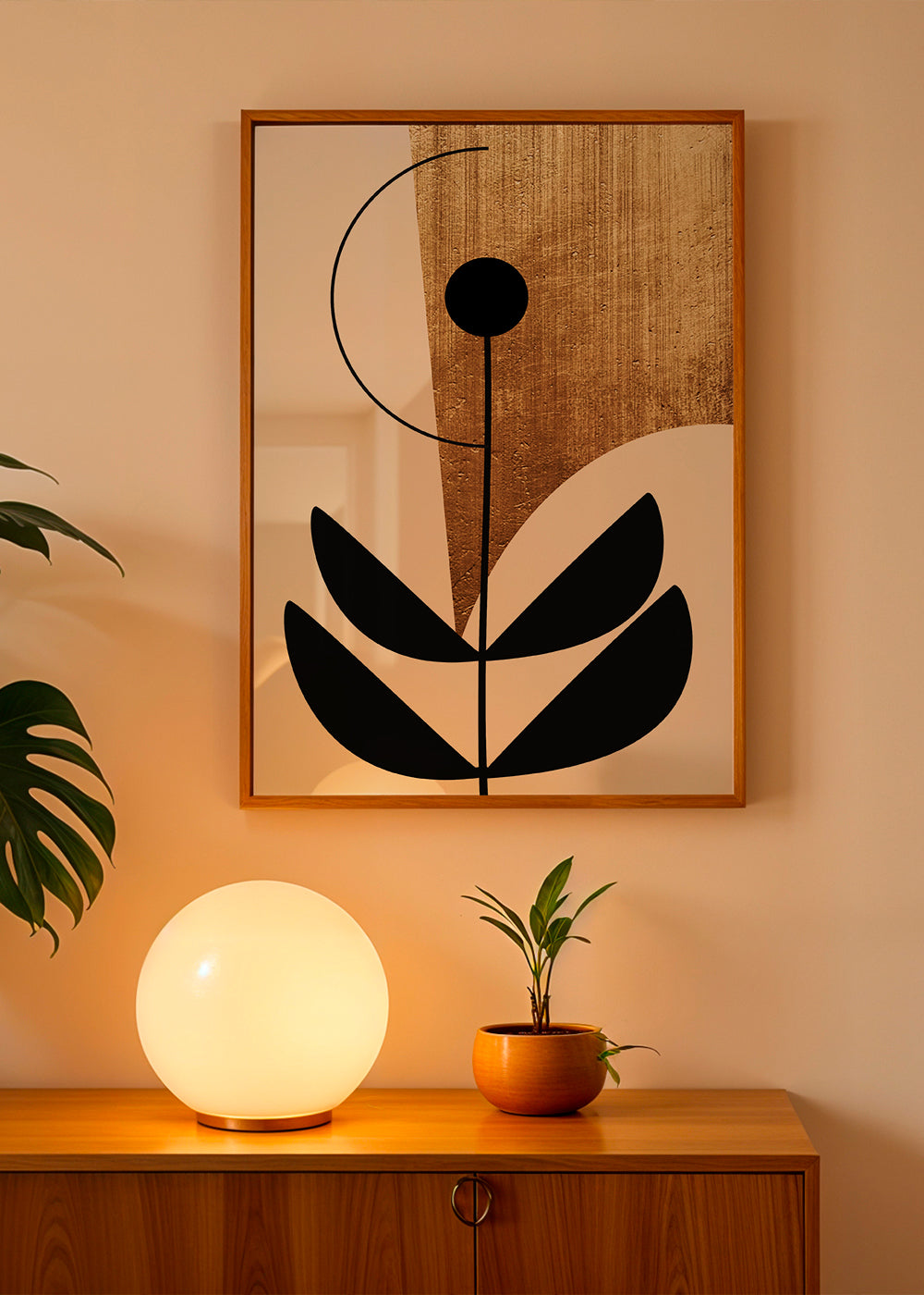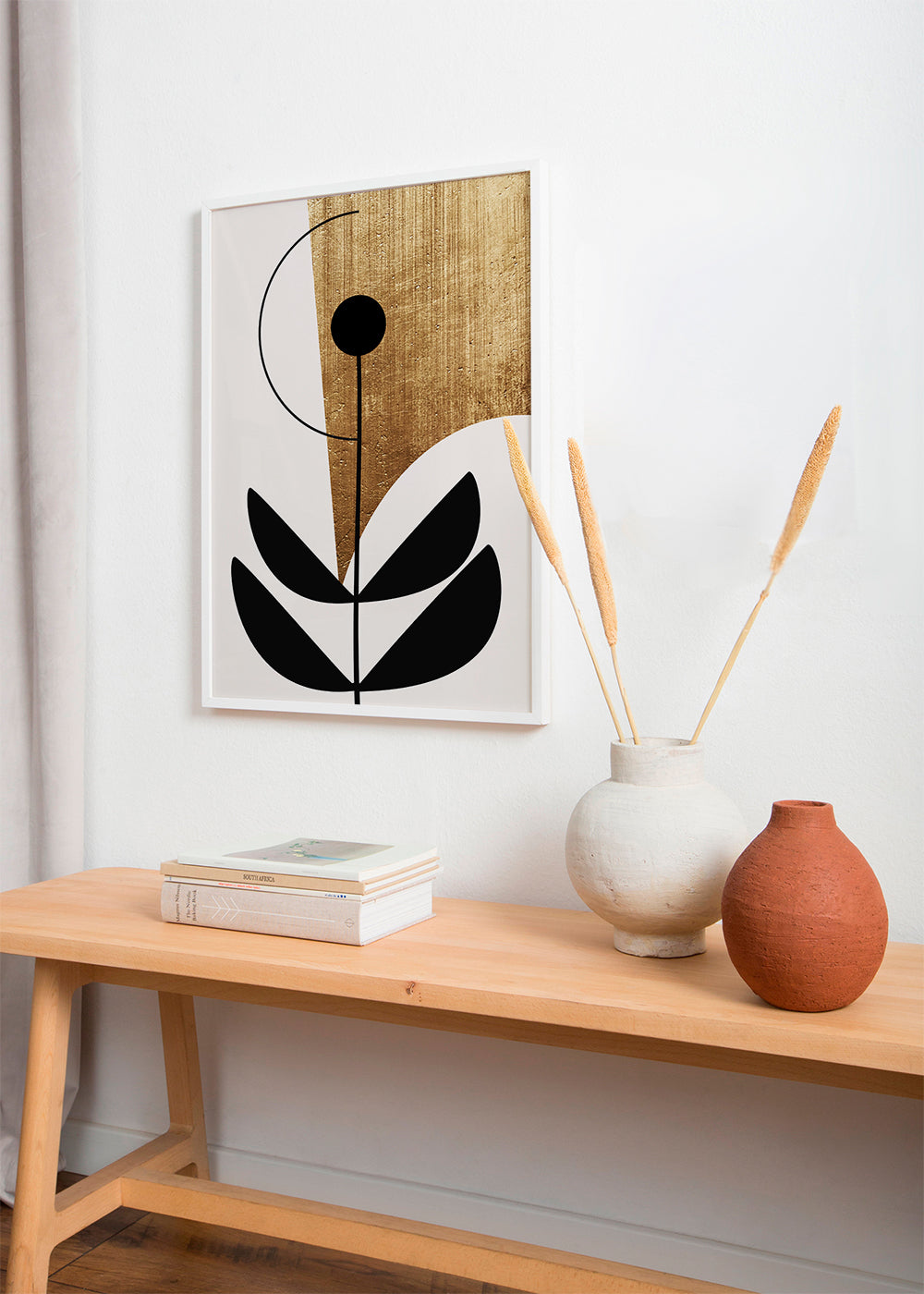 Beautiful poster inspired by the collection of palm tree prints, made by Kubistika, in tones of gold, and in vertical position. Create a vertical garden by pairing this piece with other prints with flowers and plants. There are no ugly or beautiful walls, just empty or full ones.