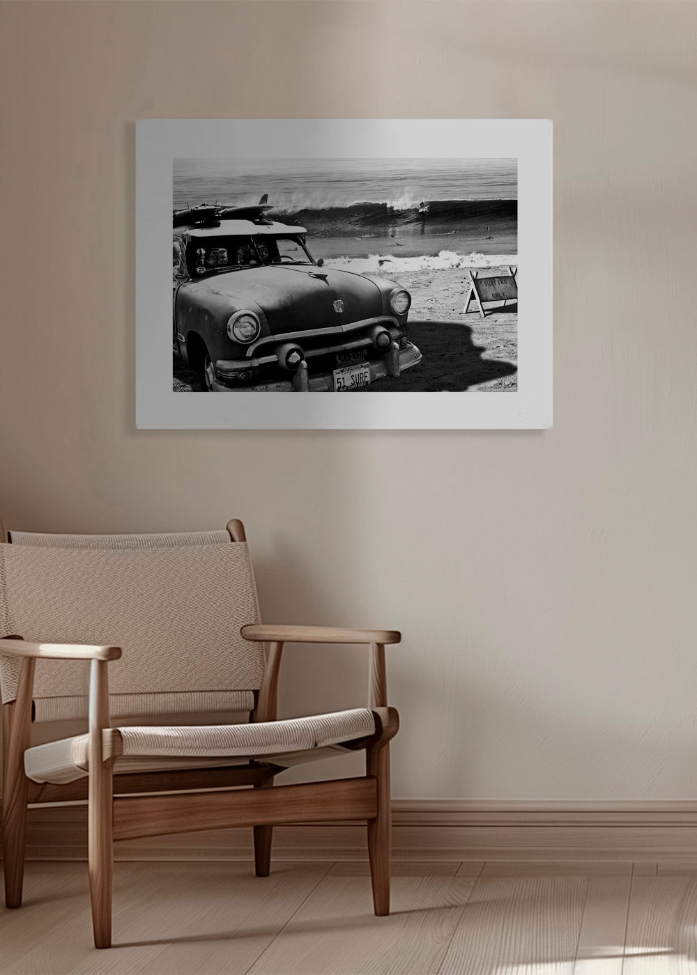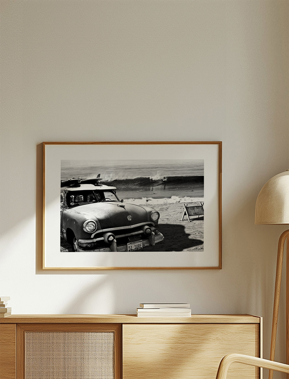 A print from our selection of cars posters and wall art, with black and white tones, and horizontal layout. A retro style that is perfect for a vintage look. Play around with different combinations of our pieces to get the look you want. The white strip around the piece enhances its expressiveness.