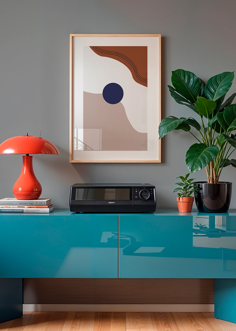 We work with solid wood and aluminium frames. All framed artworks are shipped already assembled and ready to hang. The front protection is made of high-clarity acrylic glass.