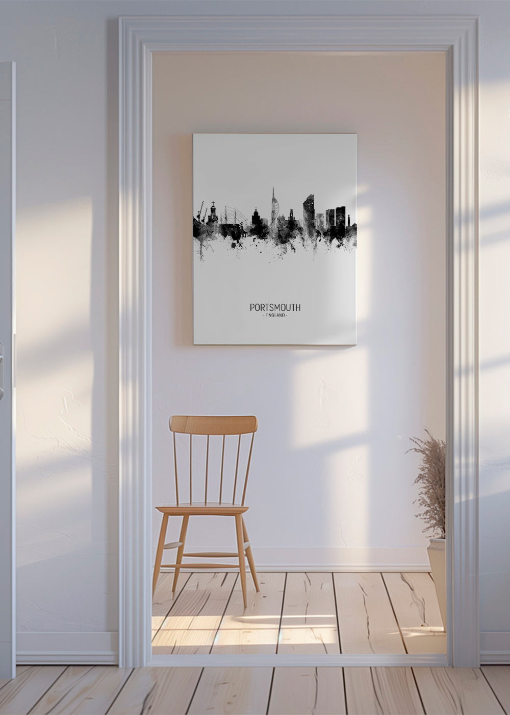 This poster from the skylines canvas series, from the Michael Tompsett collection, in tones of black, and in vertical position. Our map and city prints are perfect for those who love cities and architecture. Walls full of creativity.