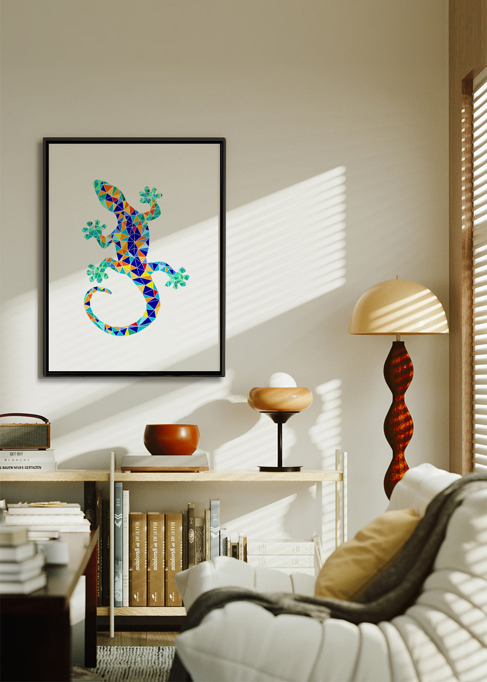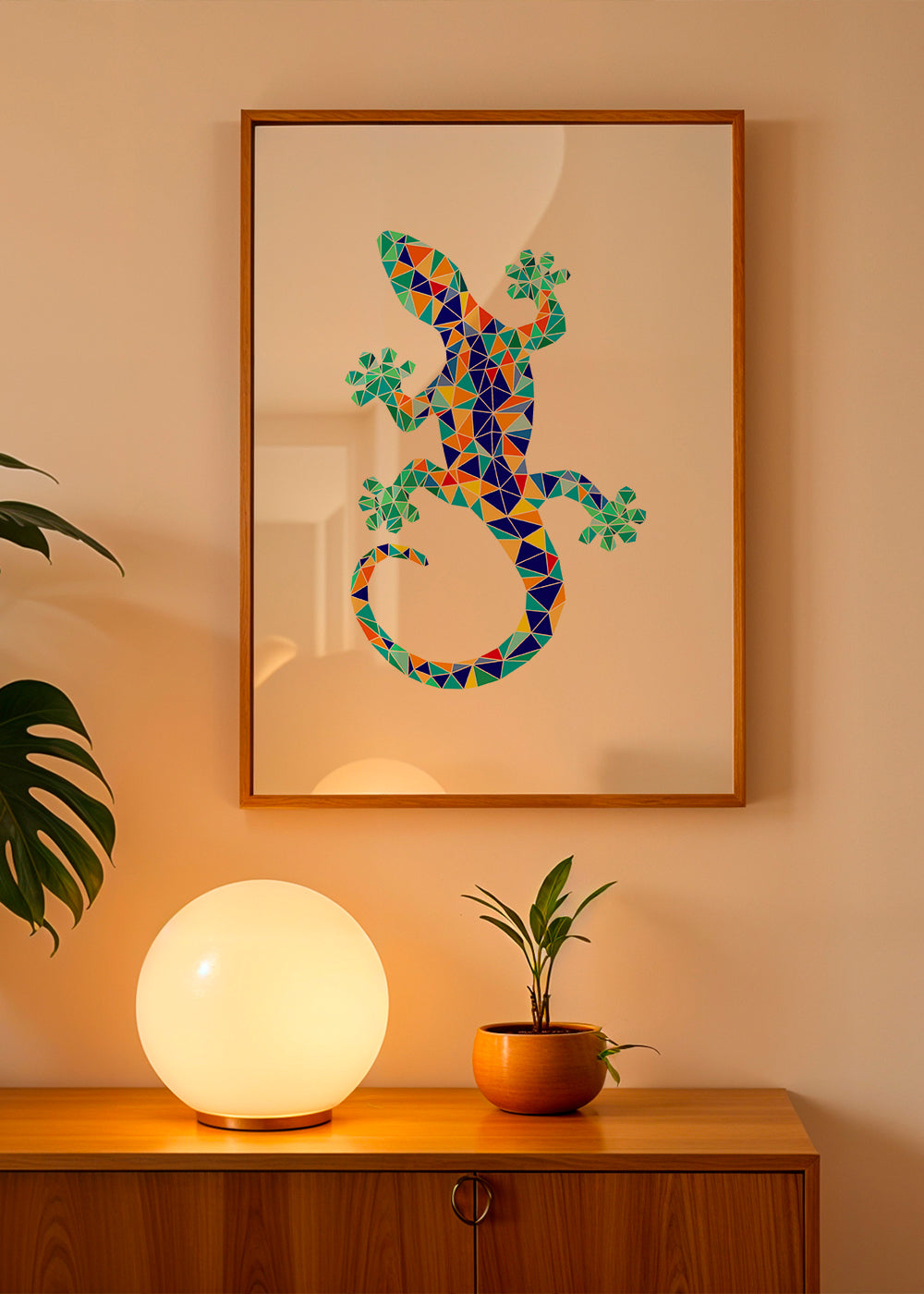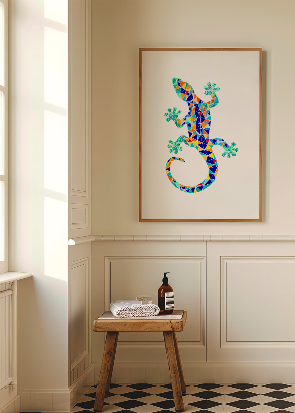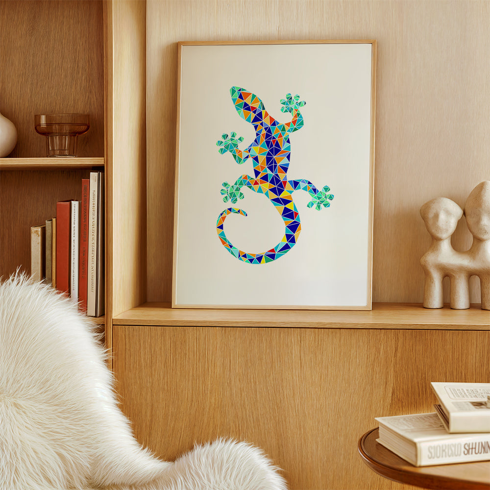 This print from the geometric wall art and prints collection, by the artist Nouveau Prints, with shades of multicolor, and vertical layout. The abstract, geometric shapes help create a casual, creative setting. Add a bit of art to your home decor.