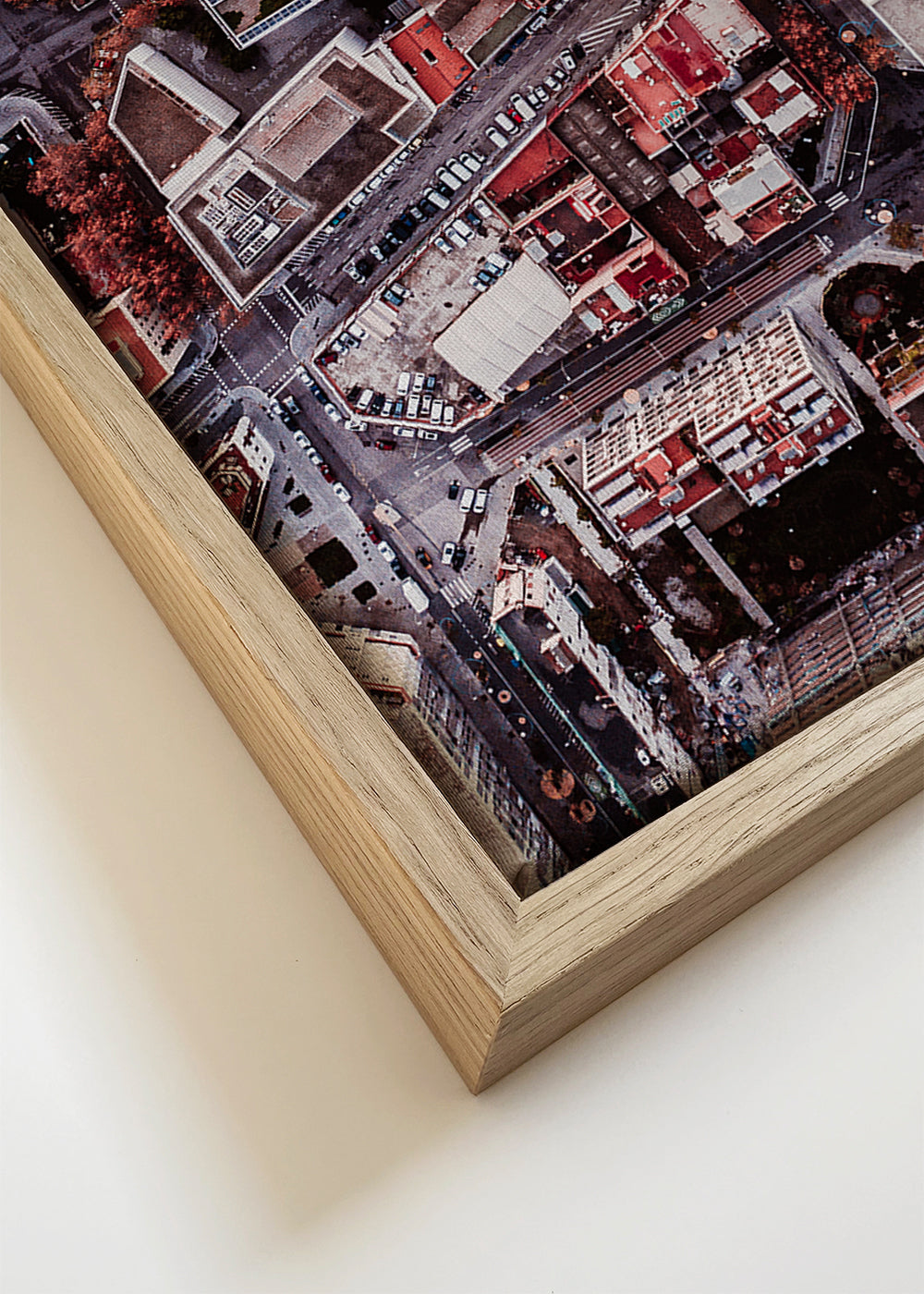 We work with solid wood and aluminium frames. All framed artworks are shipped already assembled and ready to hang. The front protection is made of high-clarity acrylic glass.