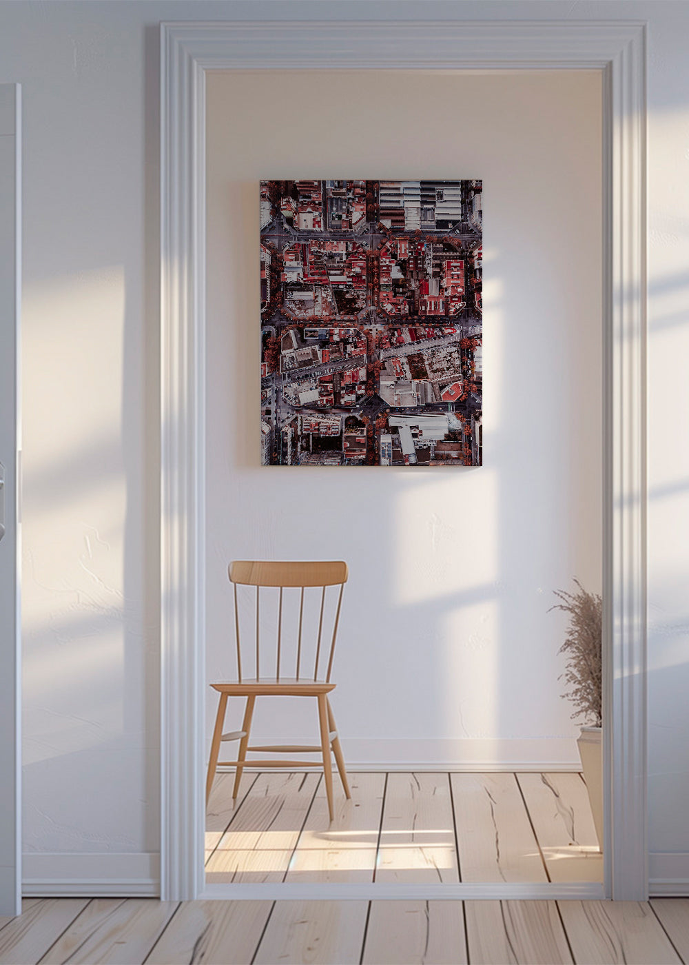 Beautiful design from our architecture wall art and prints collection, from the Chris Abatzis collection, with red pigments, and to hang in vertical position. Combine skylines, photos and city maps to create a composition for those with wanderlust. Get swept away by art.