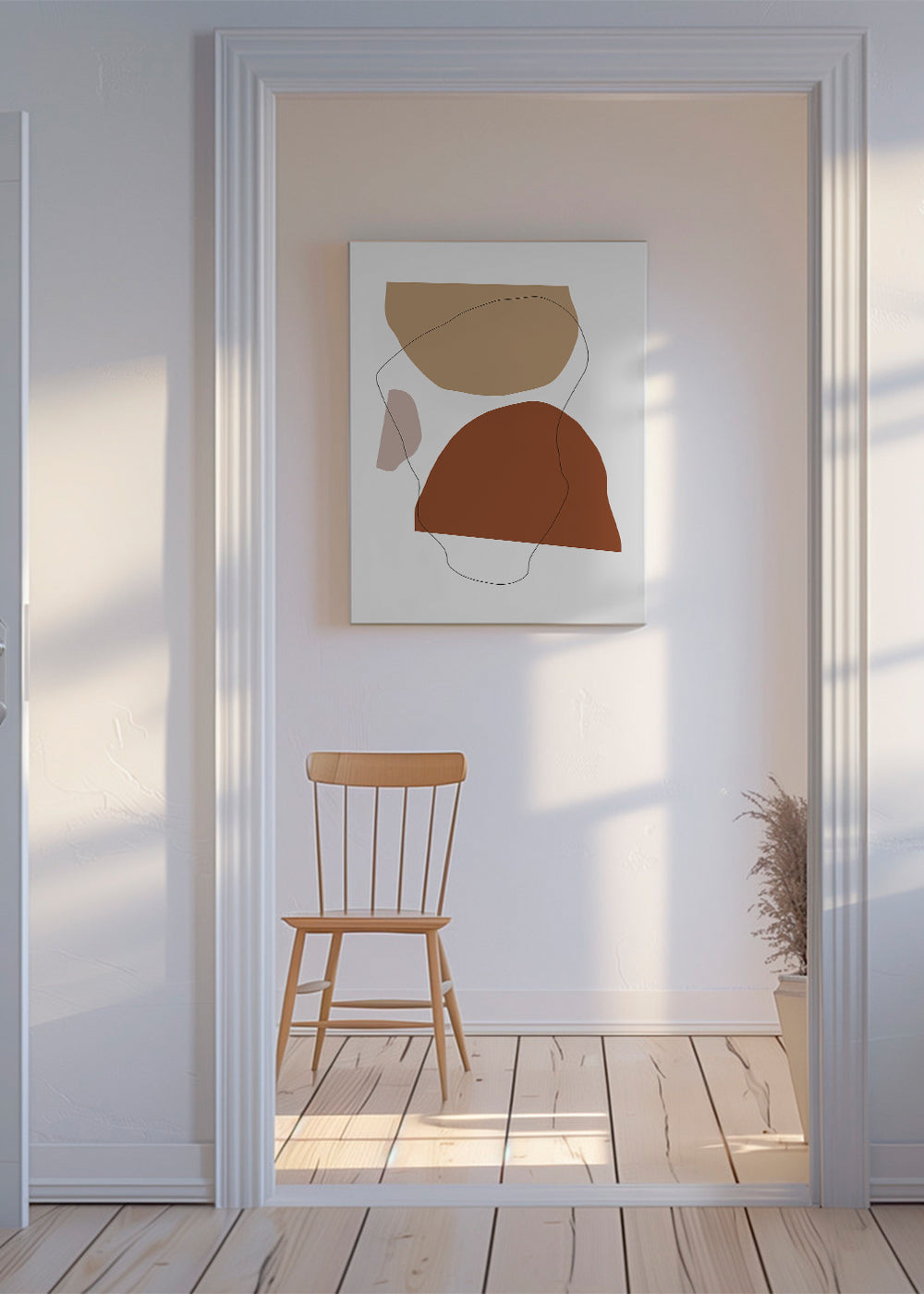 Each canvas is hand-stretched over a wooden frame. The depth is 3 cm for unframed canvases and 4 cm for framed canvases.