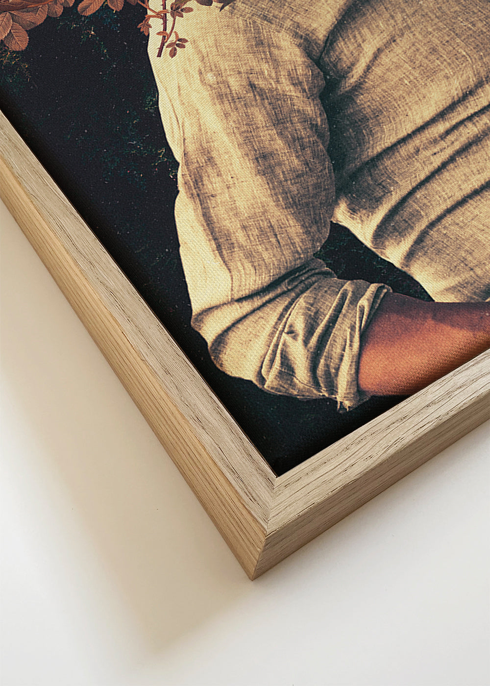 If you select the passepartout option, we will add the white matt board to the frame, and we will reduce the design of the work. For example, if you select a print size 20x28 in, with an oak colored frame and passepartout, we will reduce the design of the print to the previous size (16x20 in). In this way, it will adapt perfectly to the inside window of the passepartout.