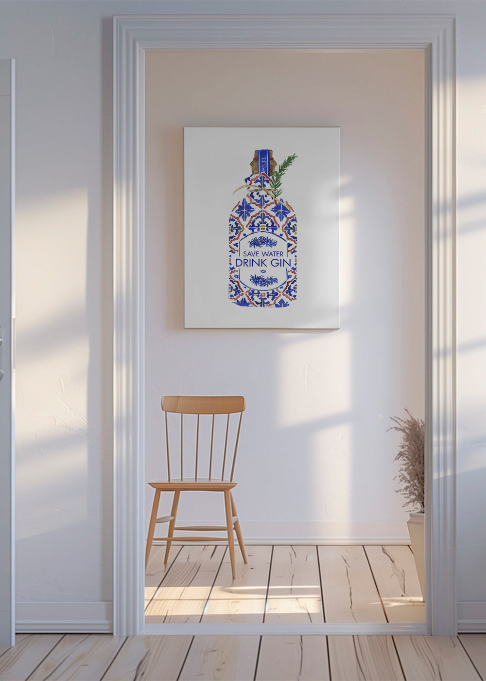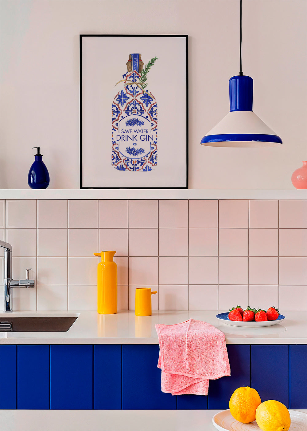 A design from our gin wall art collection, from the collection of the artist Mercedes Lopez Charro, with blue, and with vertical layout. A design for the foodies in the house. Decorate your kitchen with prints; Free your creative spirit, decorate your walls with art.
