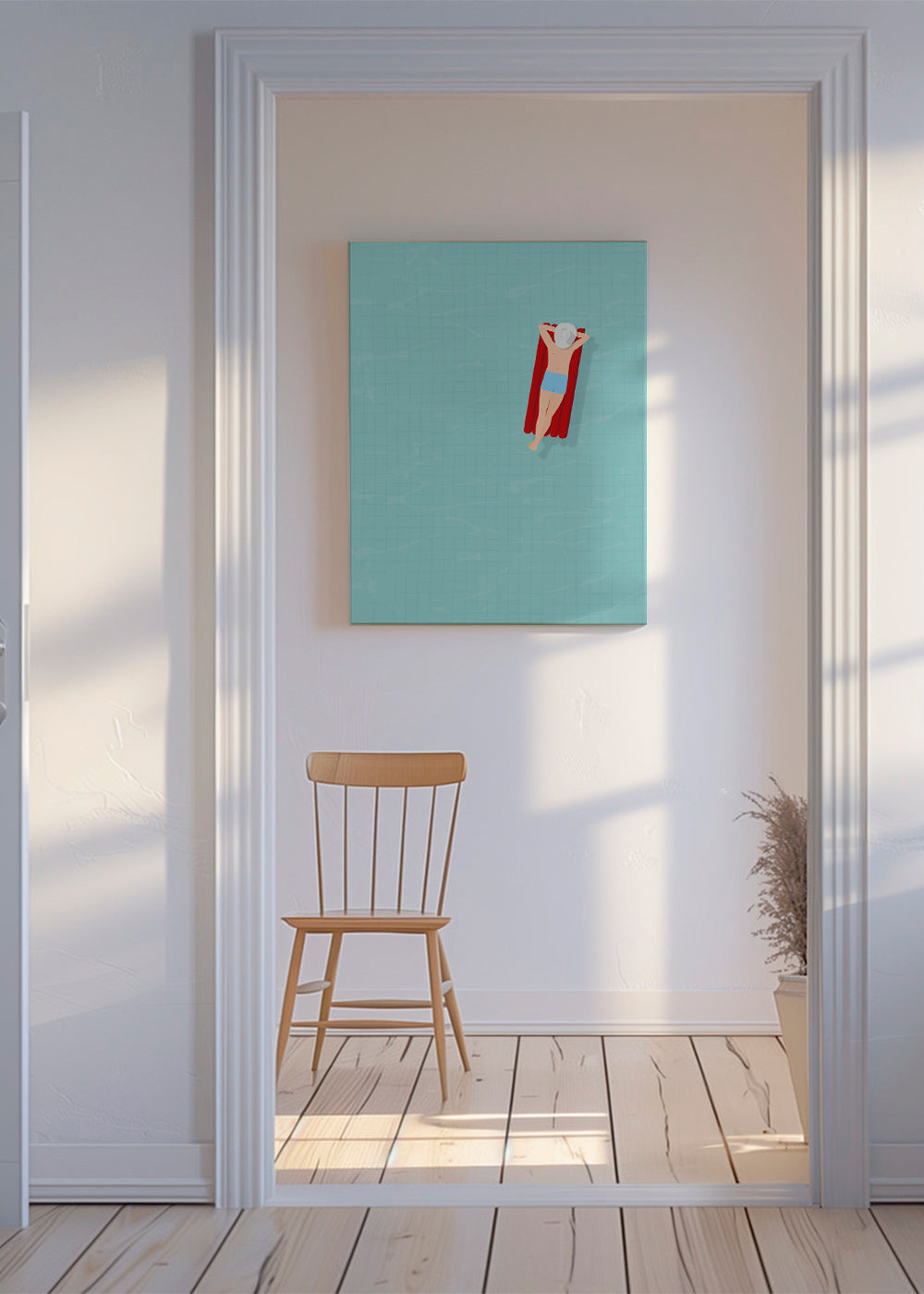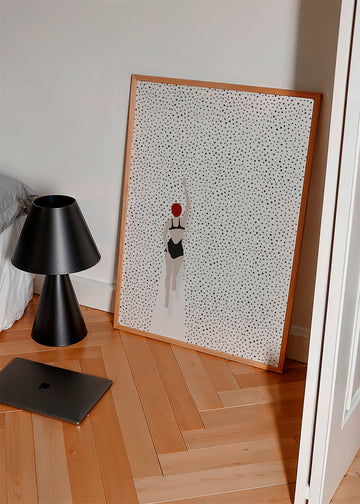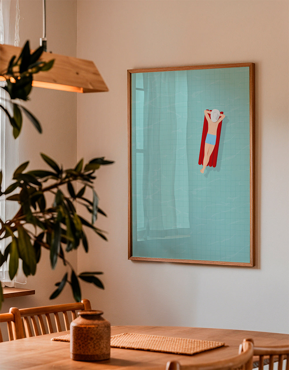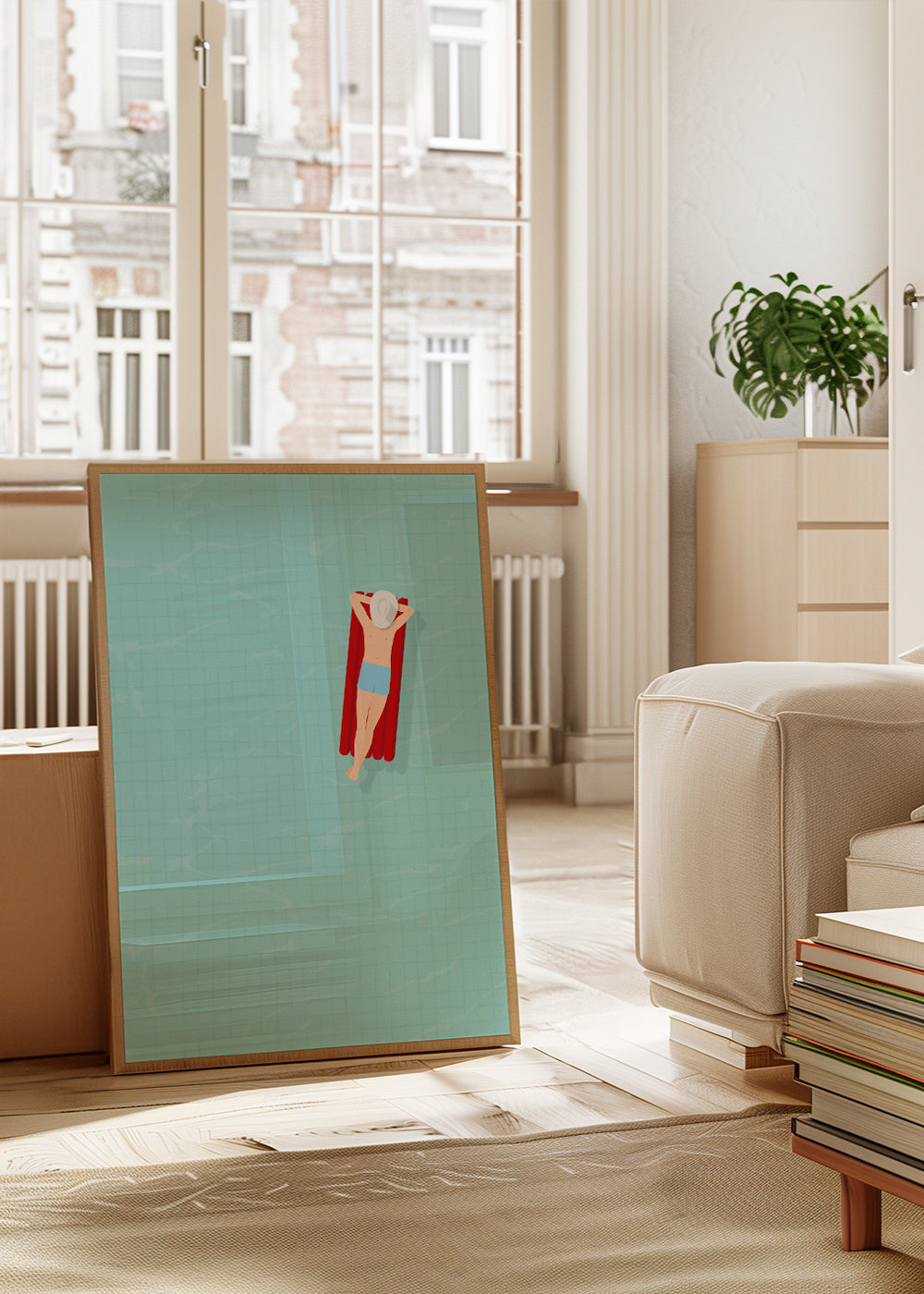 Beautiful print inspired by the collection of swimming posters, from the mind of Amy & Kurt Berlin, with shades of red, and with vertical layout. A perfect piece for sport-lovers. Bring out your sporty side with our sports prints. Elegant walls for chic homes.