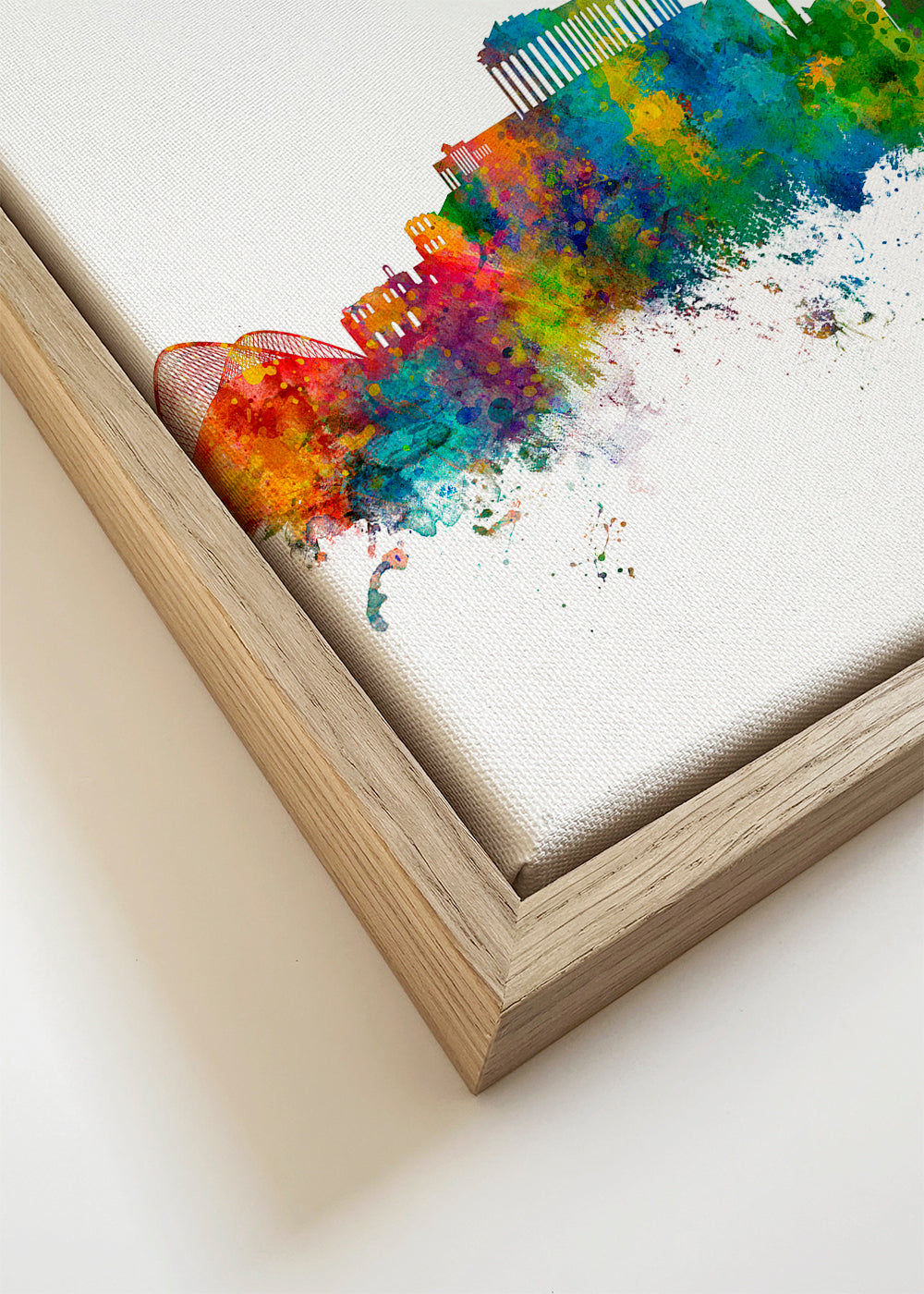 Beautiful design inspired by the collection of skylines canvas, by Michael Tompsett, with tones of multicolor, and with horizontal layout. Combine skylines, photos and city maps to create a composition for those with wanderlust. Create a one-of-a-kind spot.