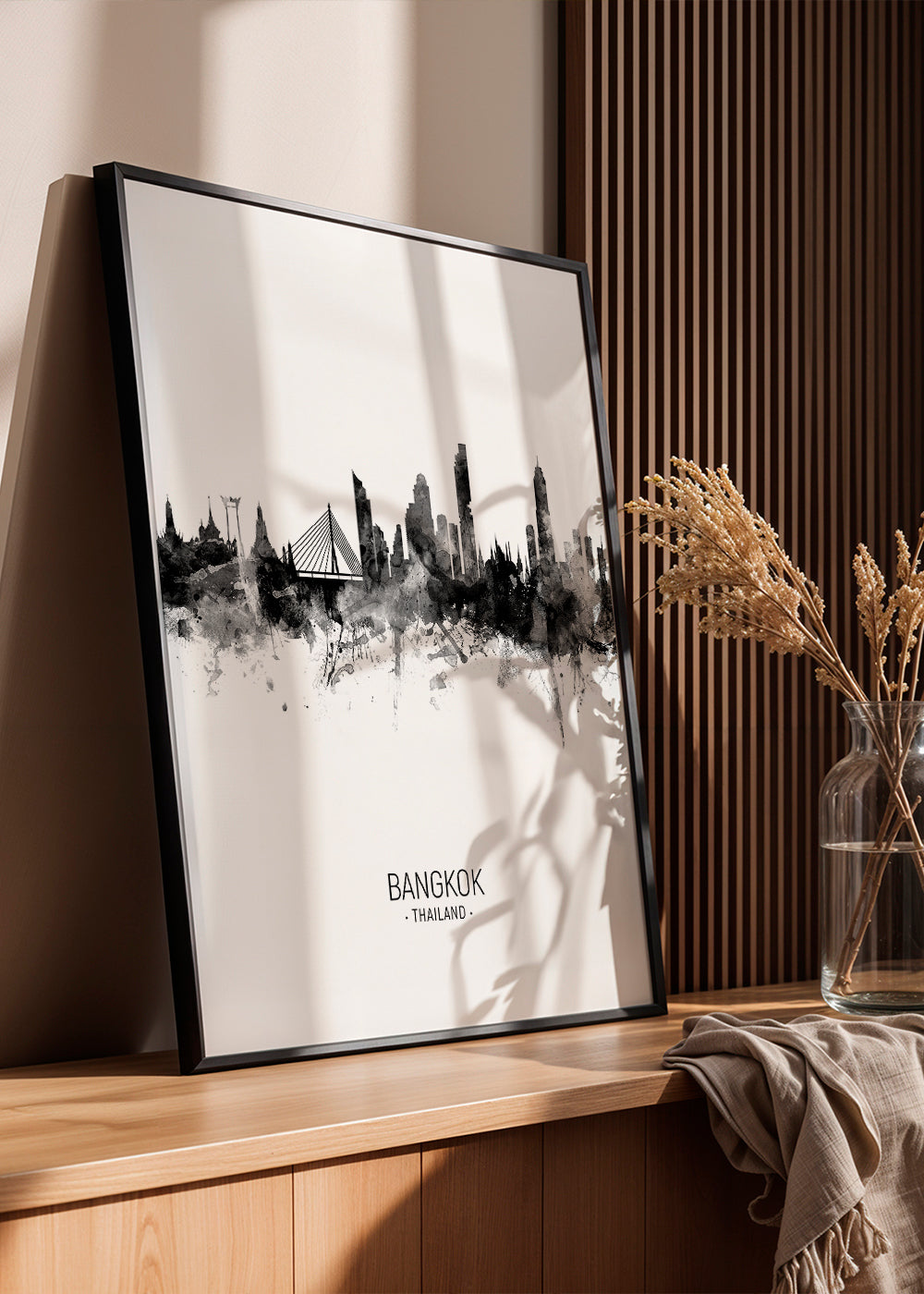 Bangkok Skyline black and white scandinavian poster