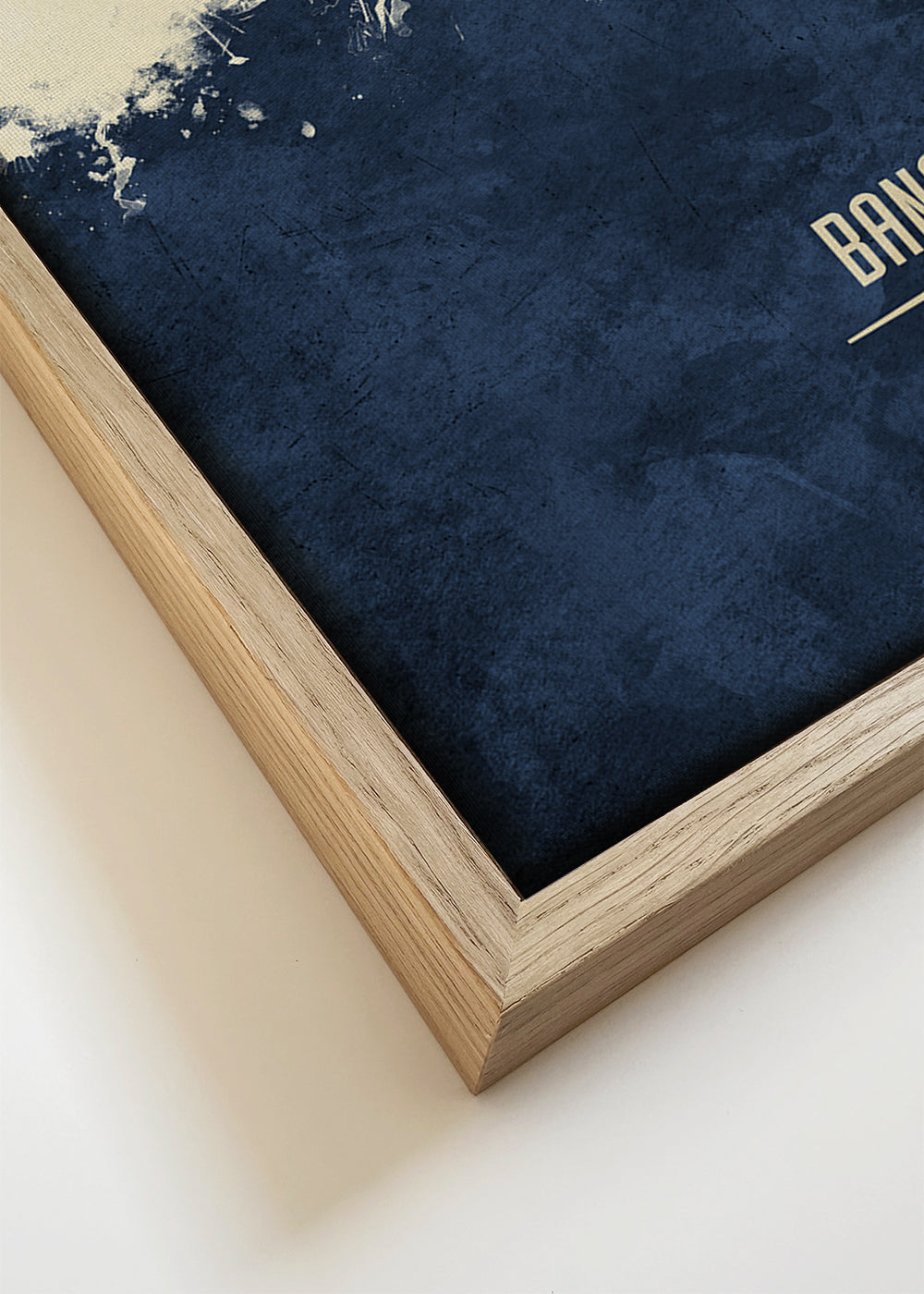 A poster from our repertoire of skylines canvas, created by Michael Tompsett, with blue tones, and vertical layout. A perfect piece for the eternal traveller. Pair it with our map and city prints. Fresh and original.