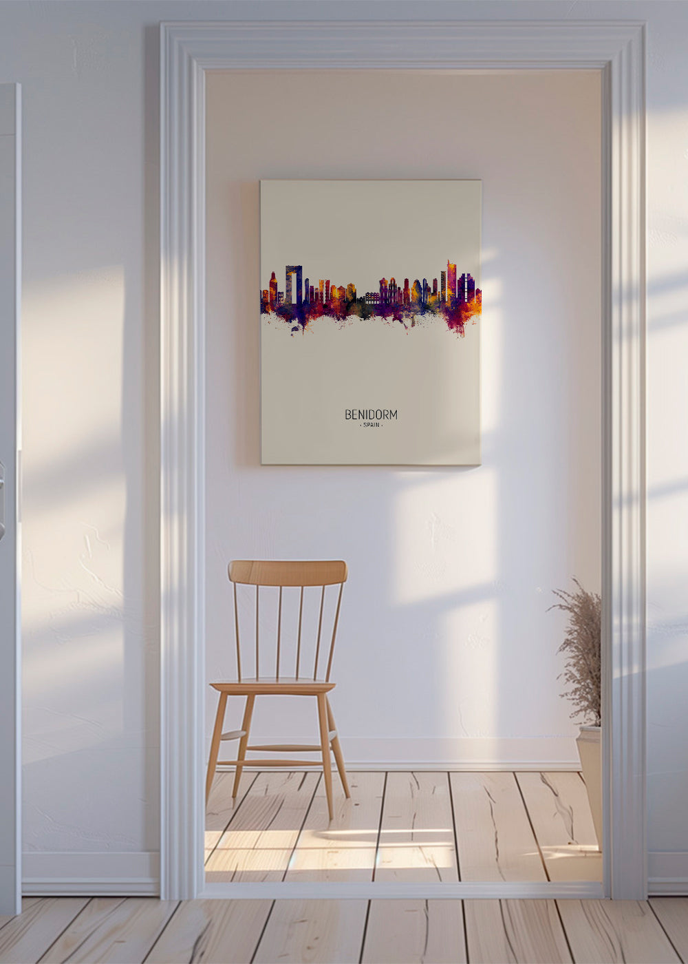 Beautiful design from our skylines canvas collection, from the collection of the artist Michael Tompsett, with shades of multicolor, and vertical layout. A perfect piece for the eternal traveller. Pair it with our map and city prints. Add a bit of art to your home decor.