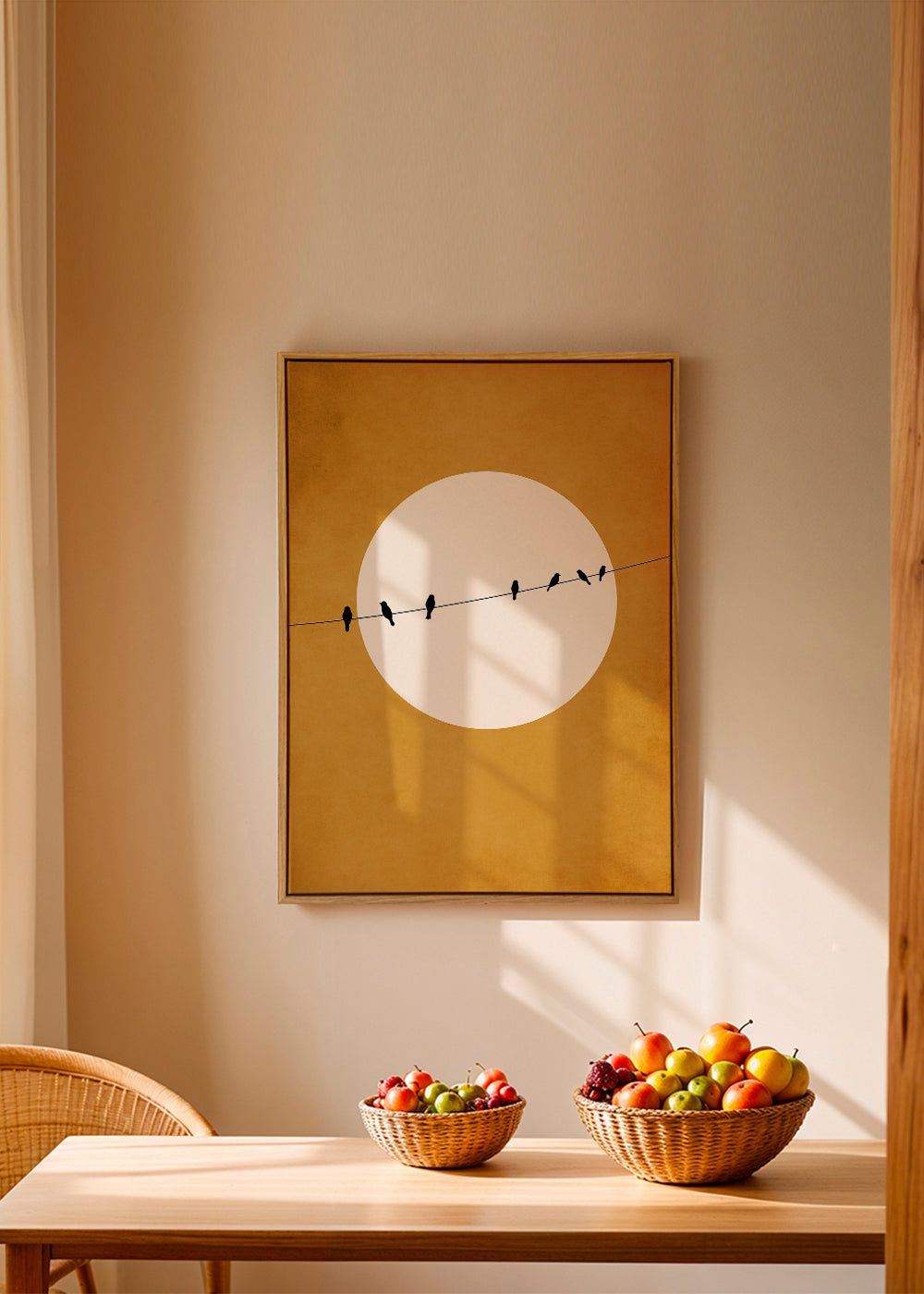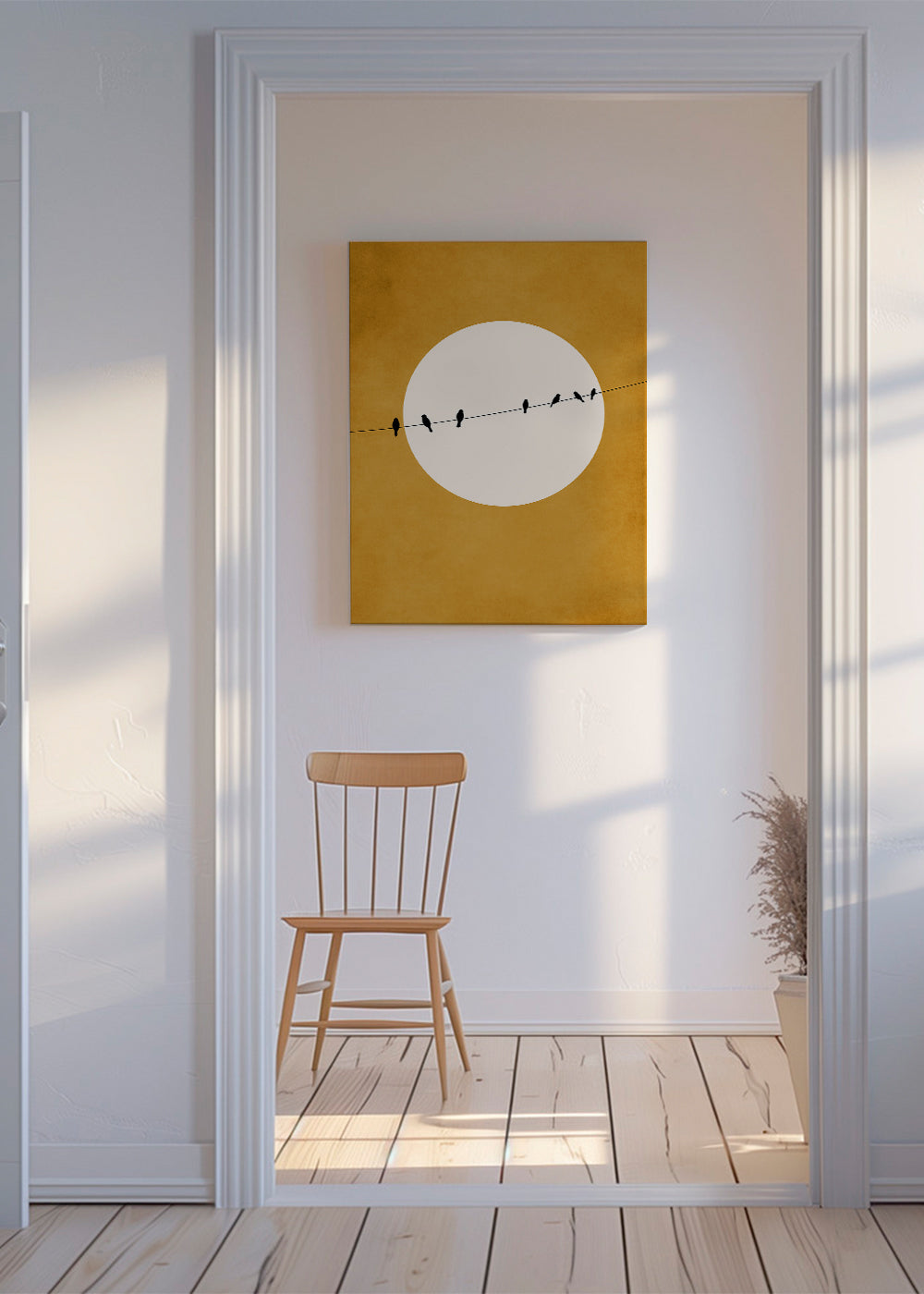Beautiful poster in the style of our sunrise and sunset wall art, an original by Kubistika, with yellow, and in vertical position. Illustrated prints give your home decor a touch of originality. There are no ugly or beautiful walls, just empty or full ones.