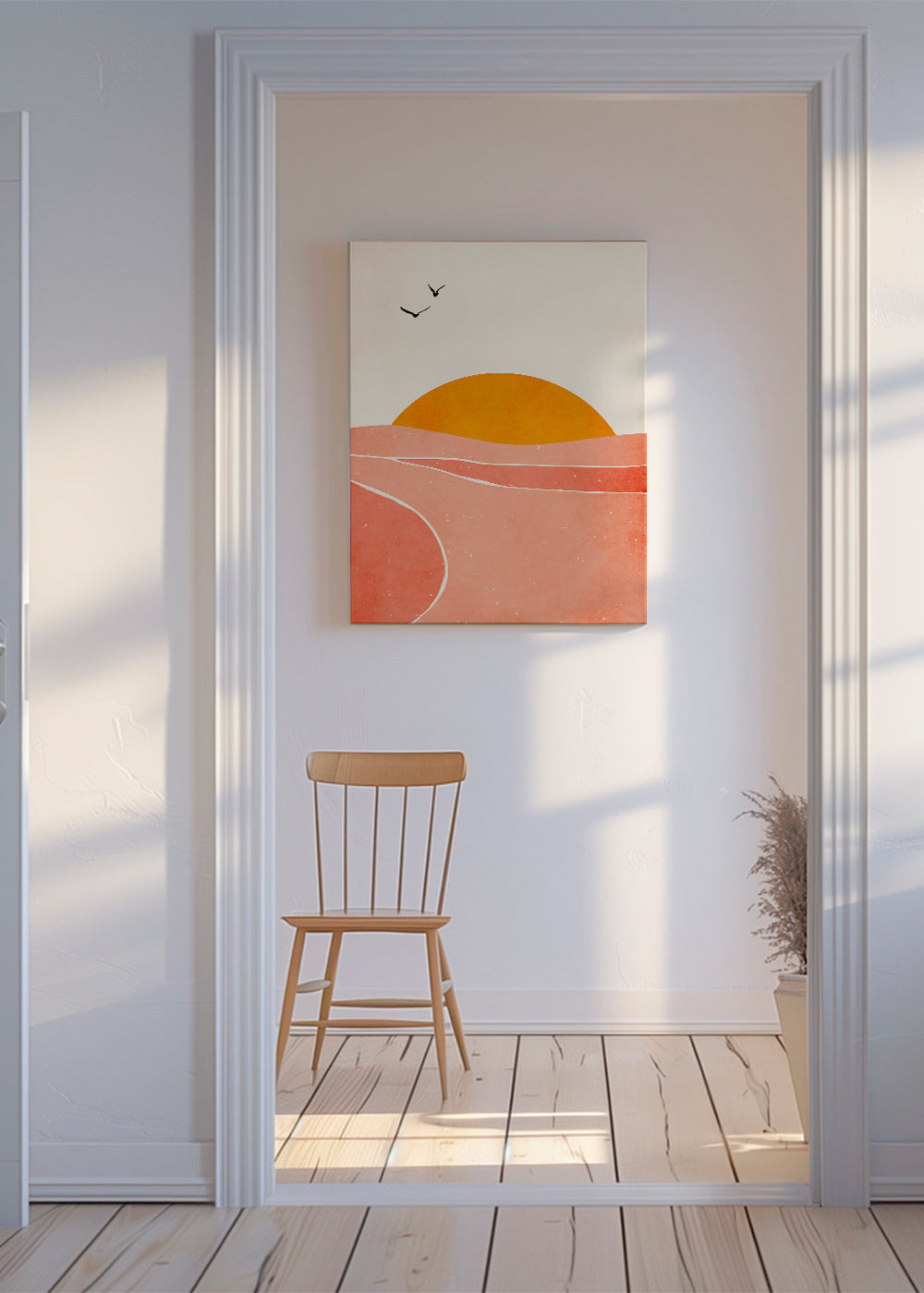 Each canvas is hand-stretched over a wooden frame. The depth is 3 cm for unframed canvases and 4 cm for framed canvases.