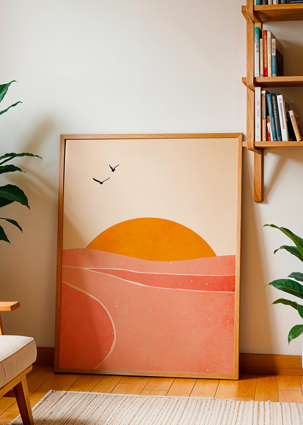 We work with solid wood and aluminium frames. All framed artworks are shipped already assembled and ready to hang. The front protection is made of high-clarity acrylic glass.
