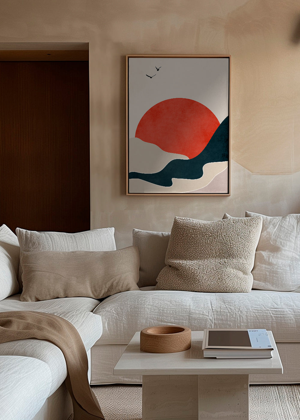 A piece from our repertoire of landscape wall art, from the collection of the artist Kubistika, with red pigments, and with vertical layout. The tranquillity and freedom of landscape prints is one of a kind. Create a one-of-a-kind spot.