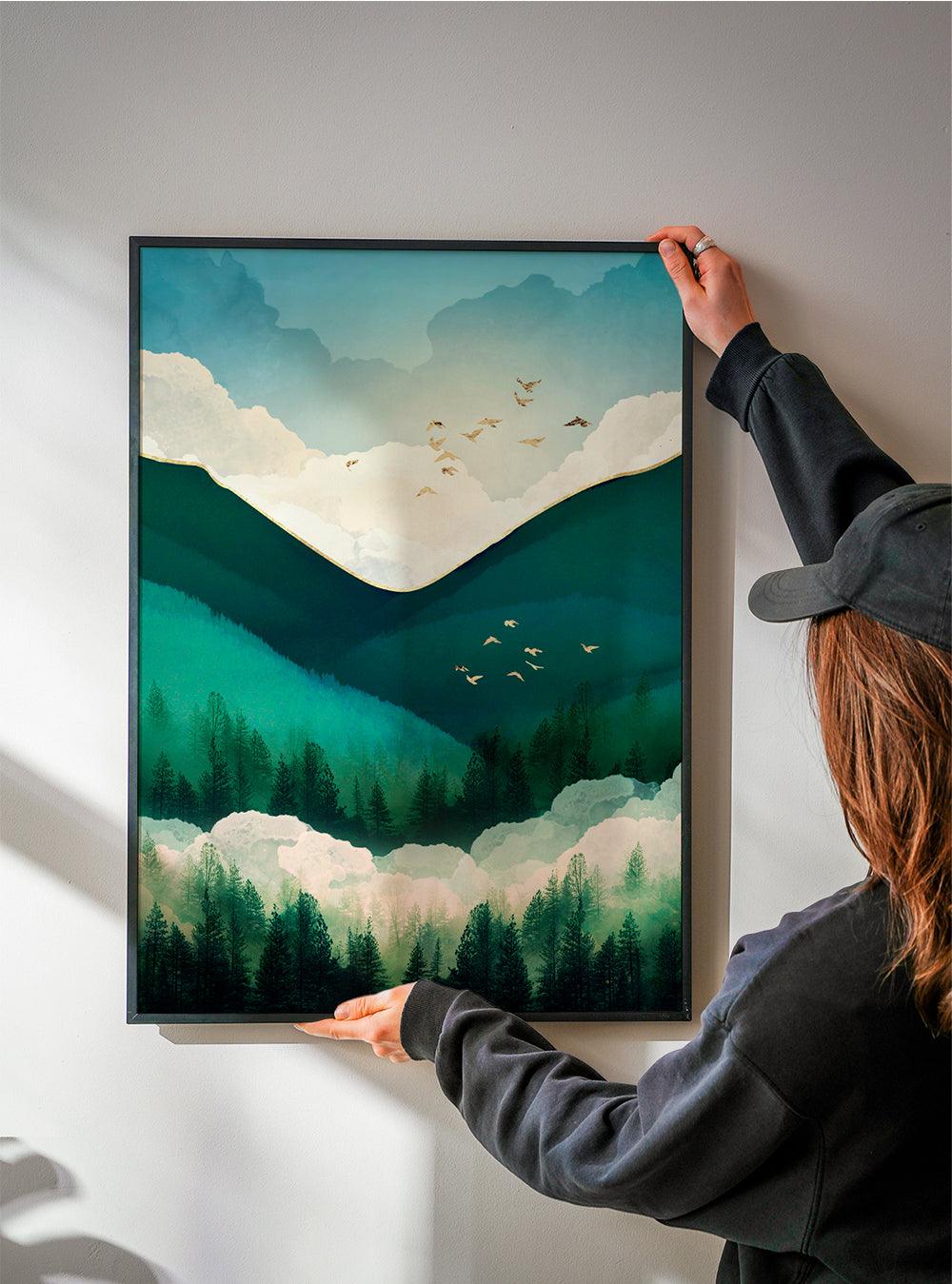 A poster from the mountains wall art category, from the mind of SpaceFrog Designs, with green pigments, and in vertical position. Landscape prints are spectacular; pair them with texts and phrases to create cool wall compositions. Let art flood your home.
