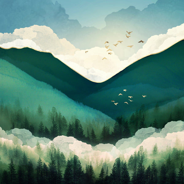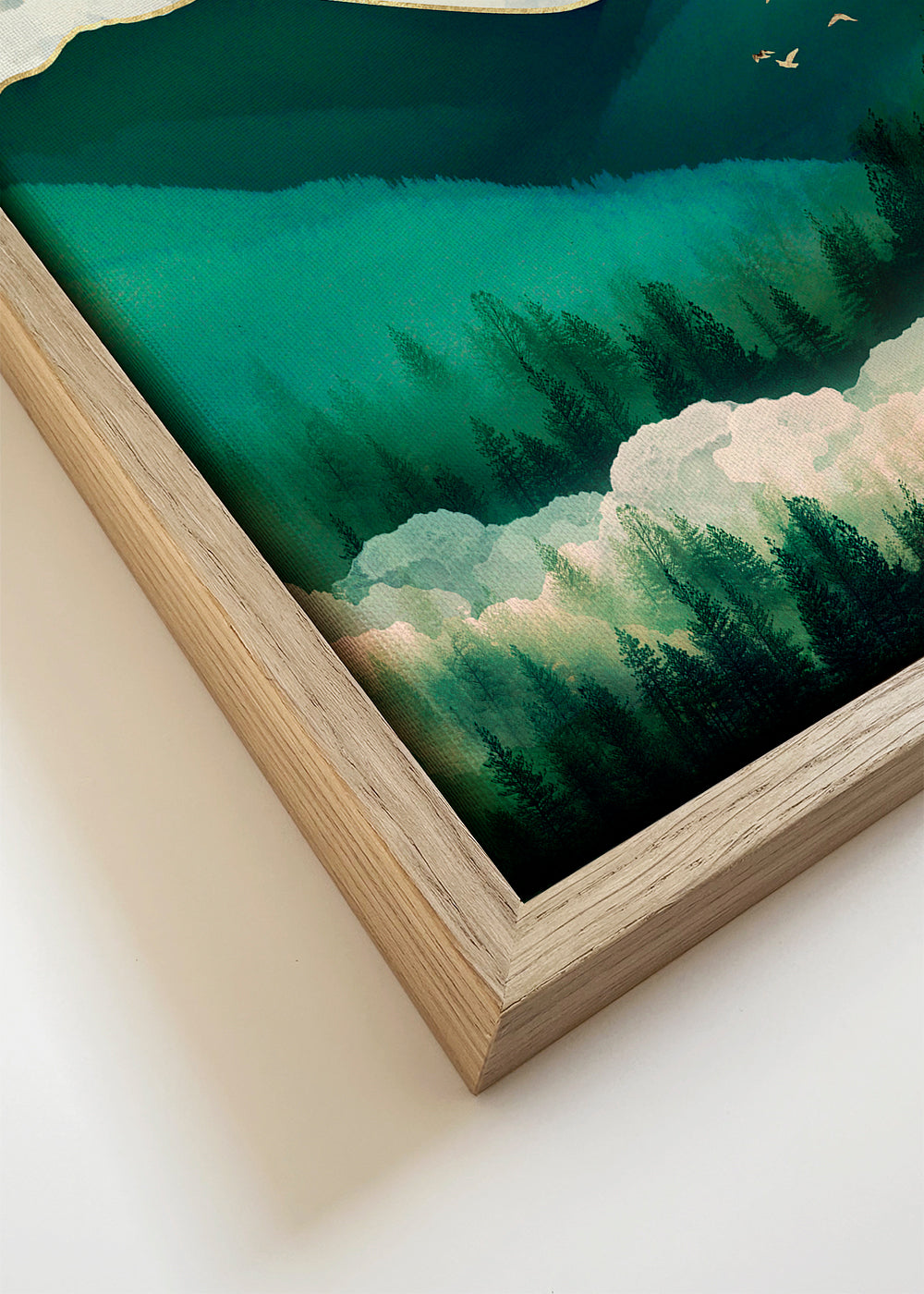 This poster from our repertoire of mountains wall art, made by SpaceFrog Designs, in tones of green. Nature in all its splendour, landscape prints convey a sense of calm. Walls full of creativity.