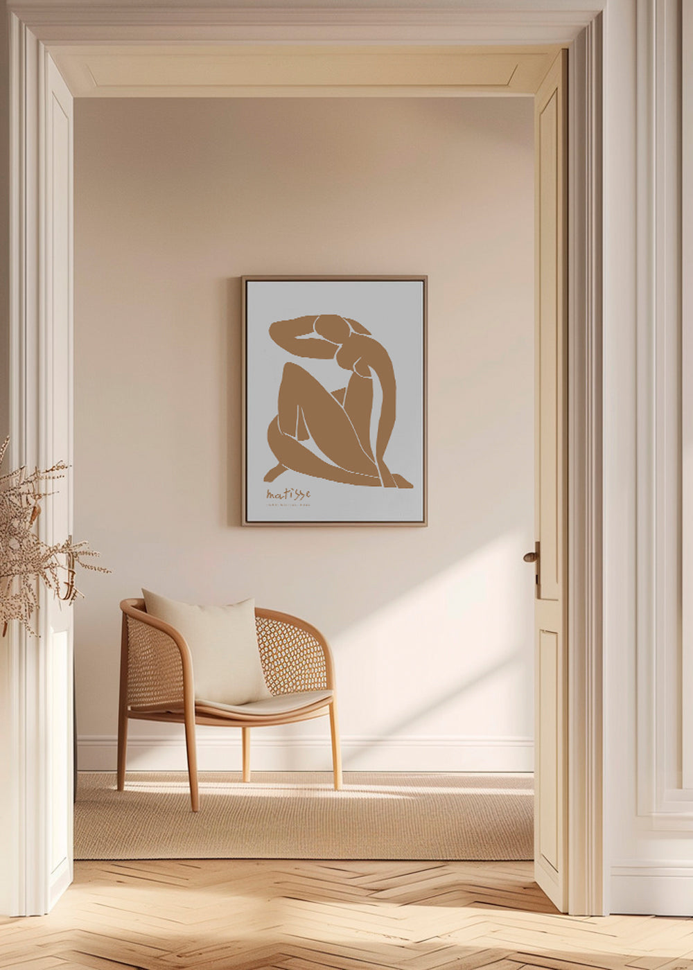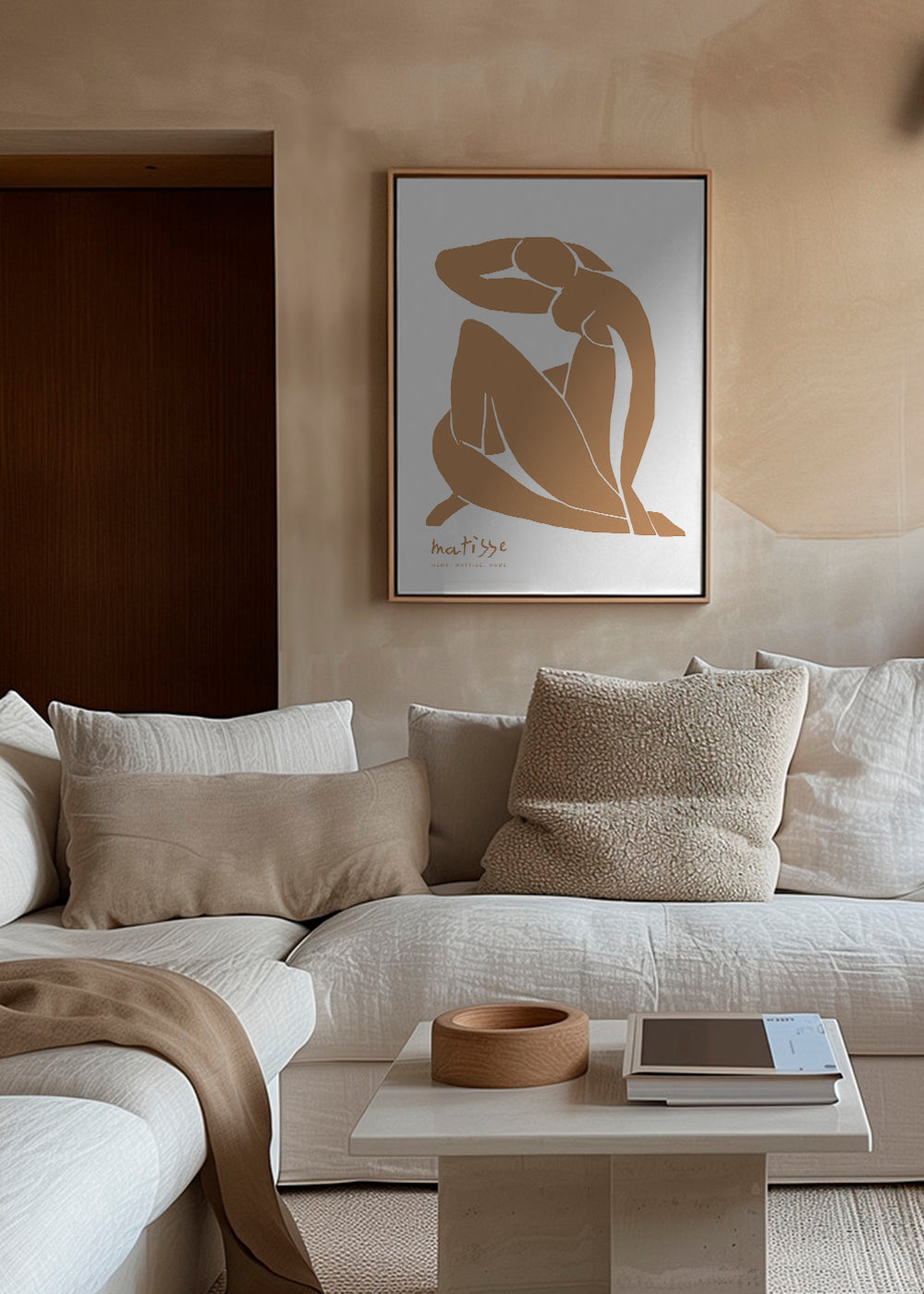 A design in the style of our famous painters and artists posters, created by Seven Wall Art, with tones of beige, and with vertical layout. Illustrated posters are the perfect way to fill your walls with creativity. Walls full of creativity.