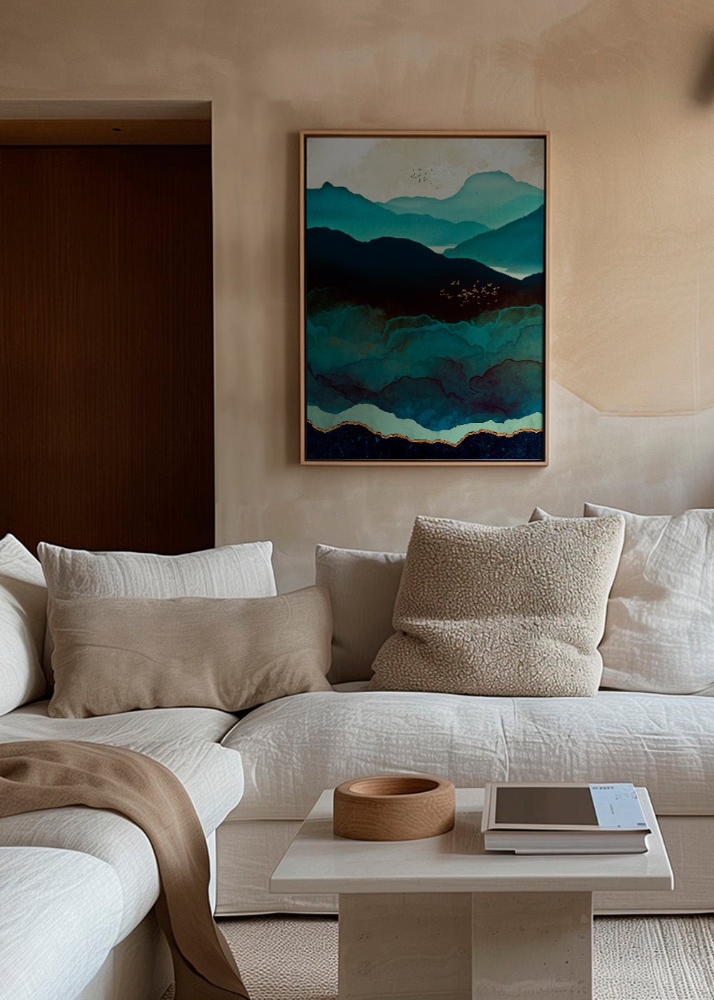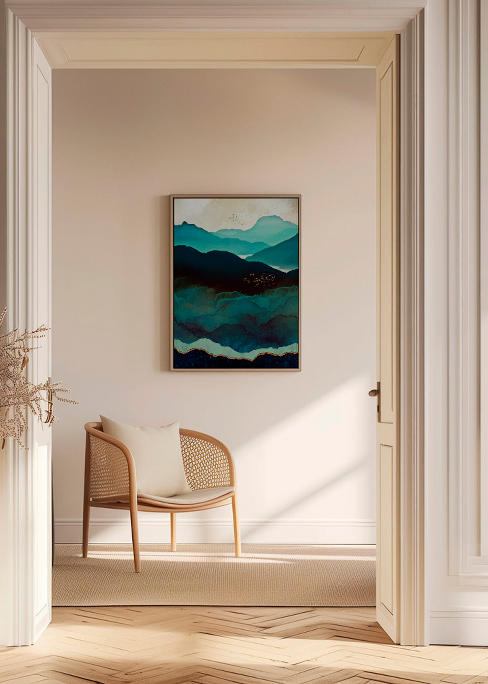 Beautiful piece from our mountains wall art series, an original by SpaceFrog Designs, with blue, and with vertical layout. A beautiful landscape perfect for pairing with other nature prints. Dress up your walls at home