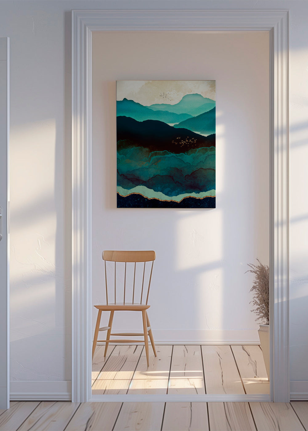 Each canvas is hand-stretched over a wooden frame. The depth is 3 cm for unframed canvases and 4 cm for framed canvases.