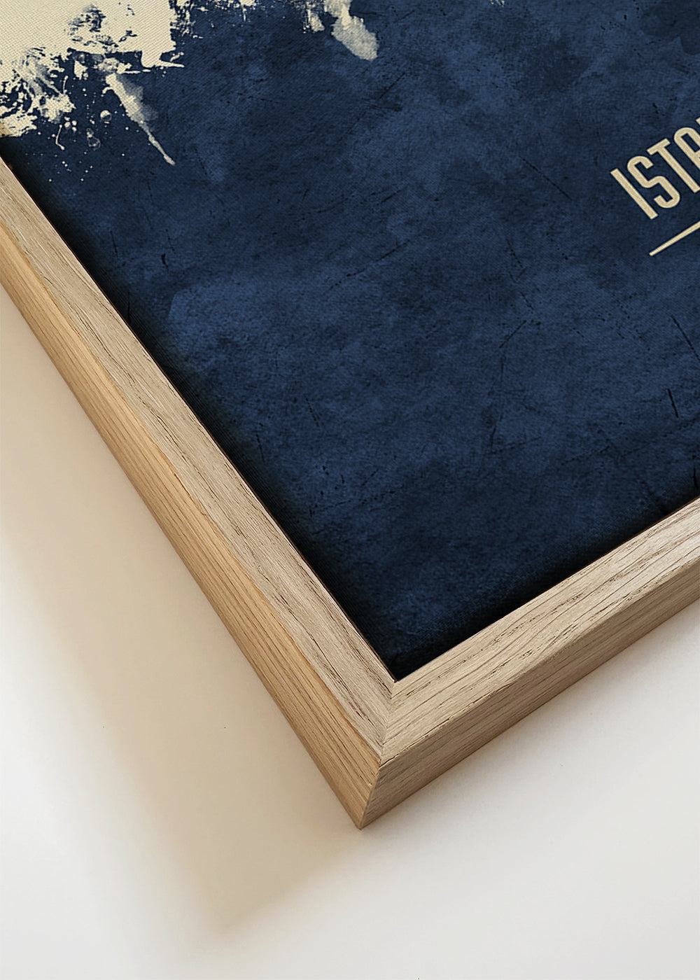 We work with solid wood and aluminium frames. All framed artworks are shipped already assembled and ready to hang. The front protection is made of high-clarity acrylic glass.