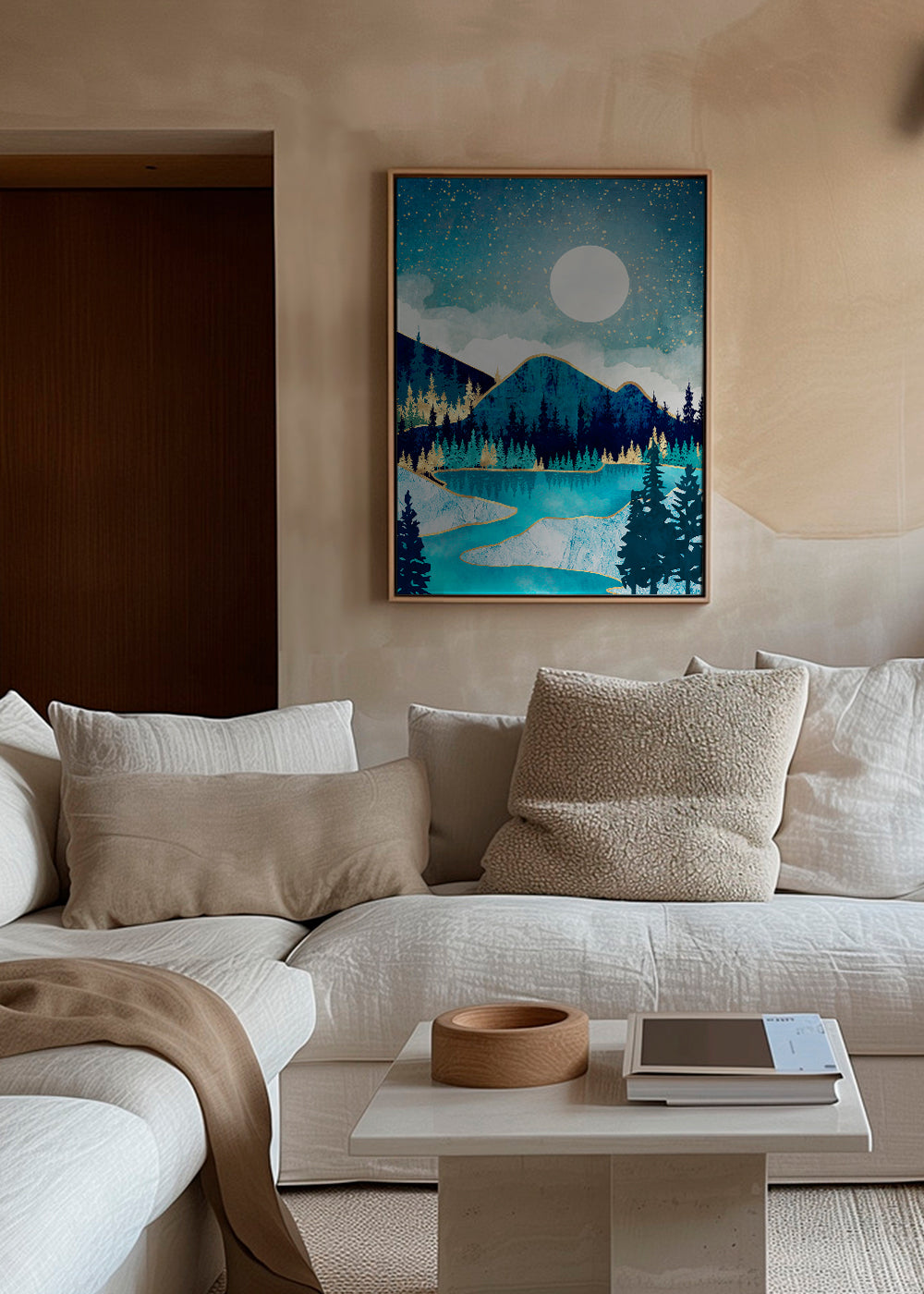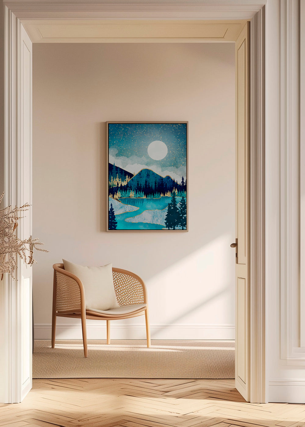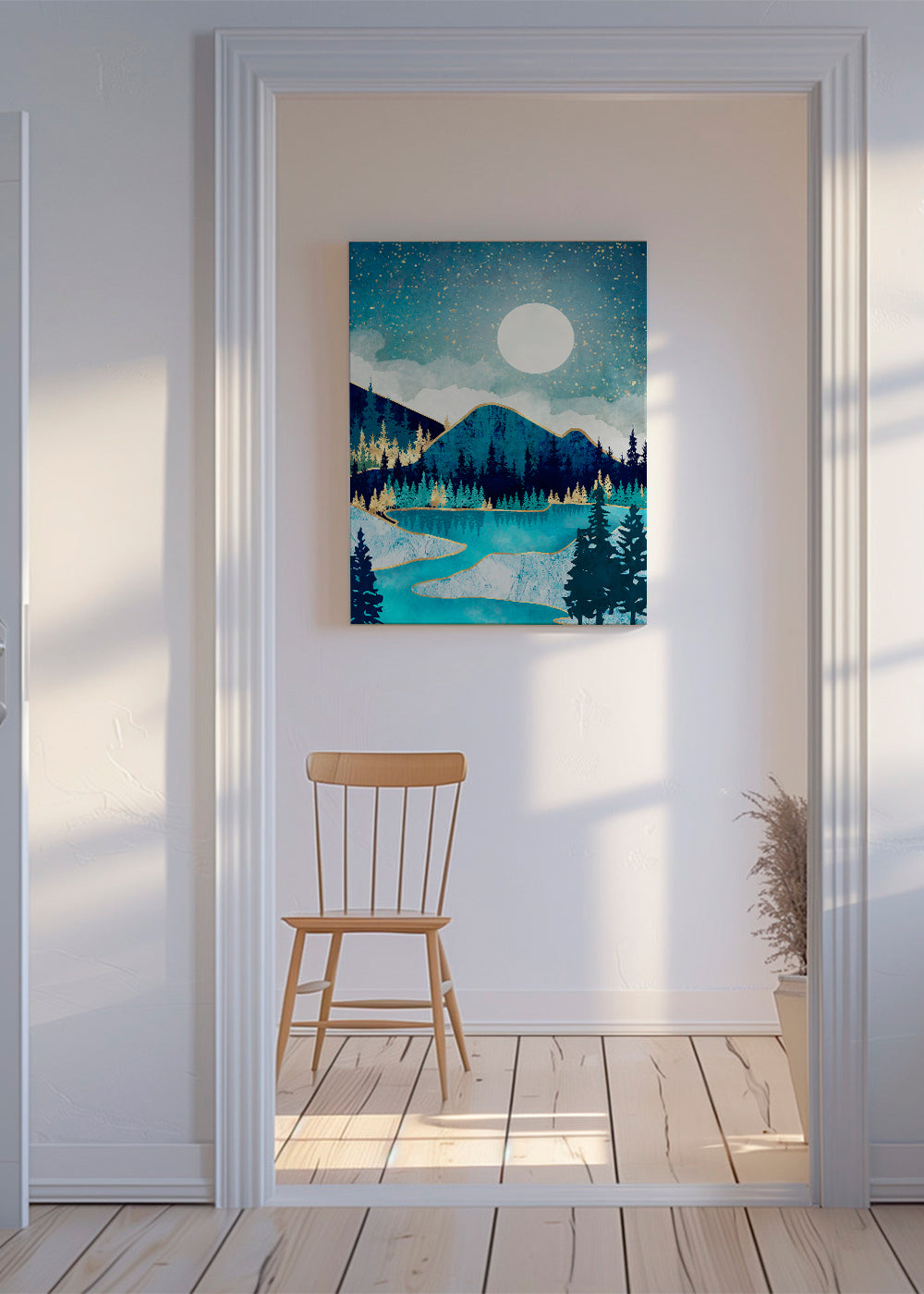 This poster from the landscape wall art collection, an original by SpaceFrog Designs, in tones of blue, and vertical layout. The tranquillity and freedom of landscape prints is one of a kind. The perfect combination of originality and design.