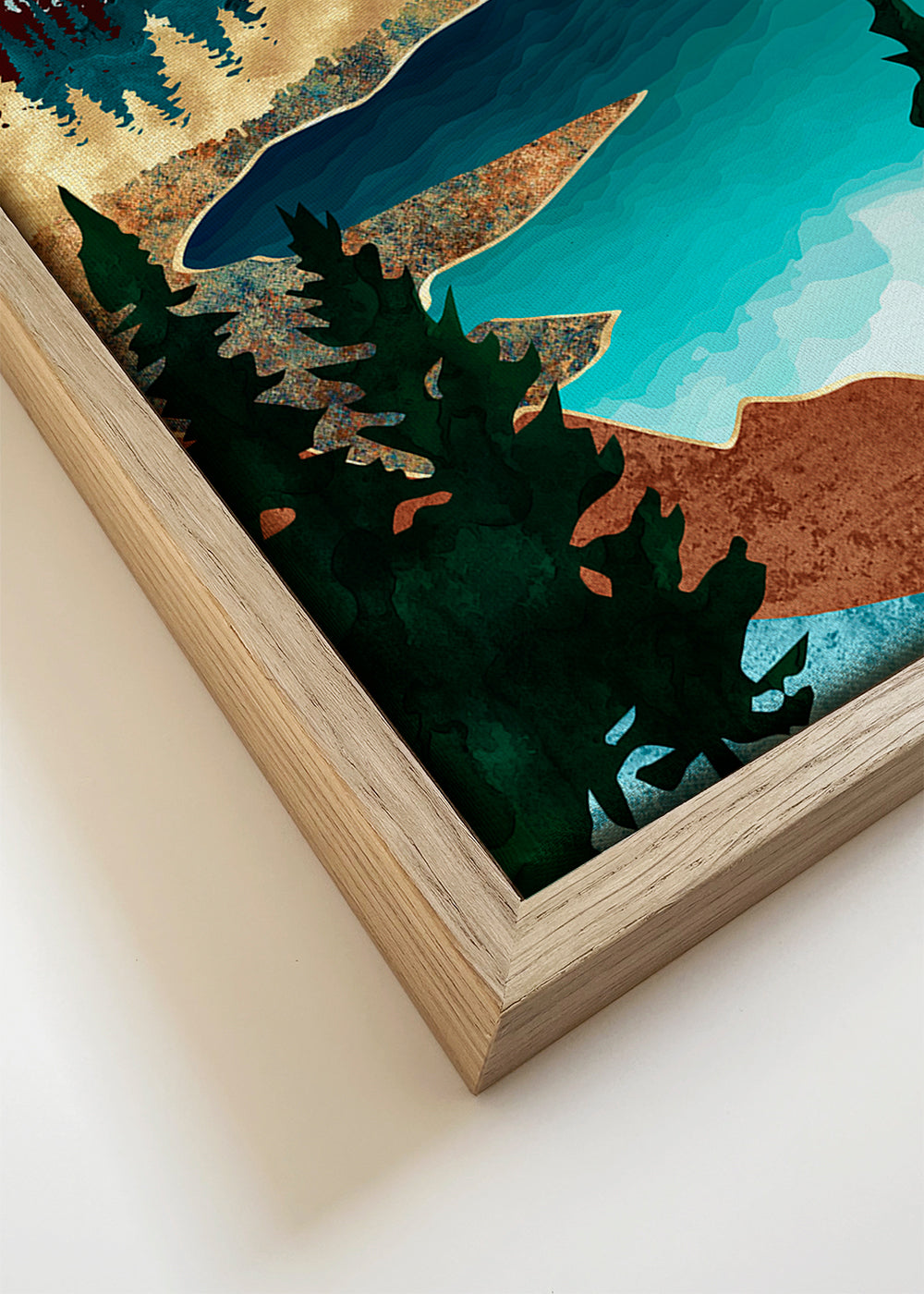 We work with solid wood and aluminium frames. All framed artworks are shipped already assembled and ready to hang. The front protection is made of high-clarity acrylic glass.