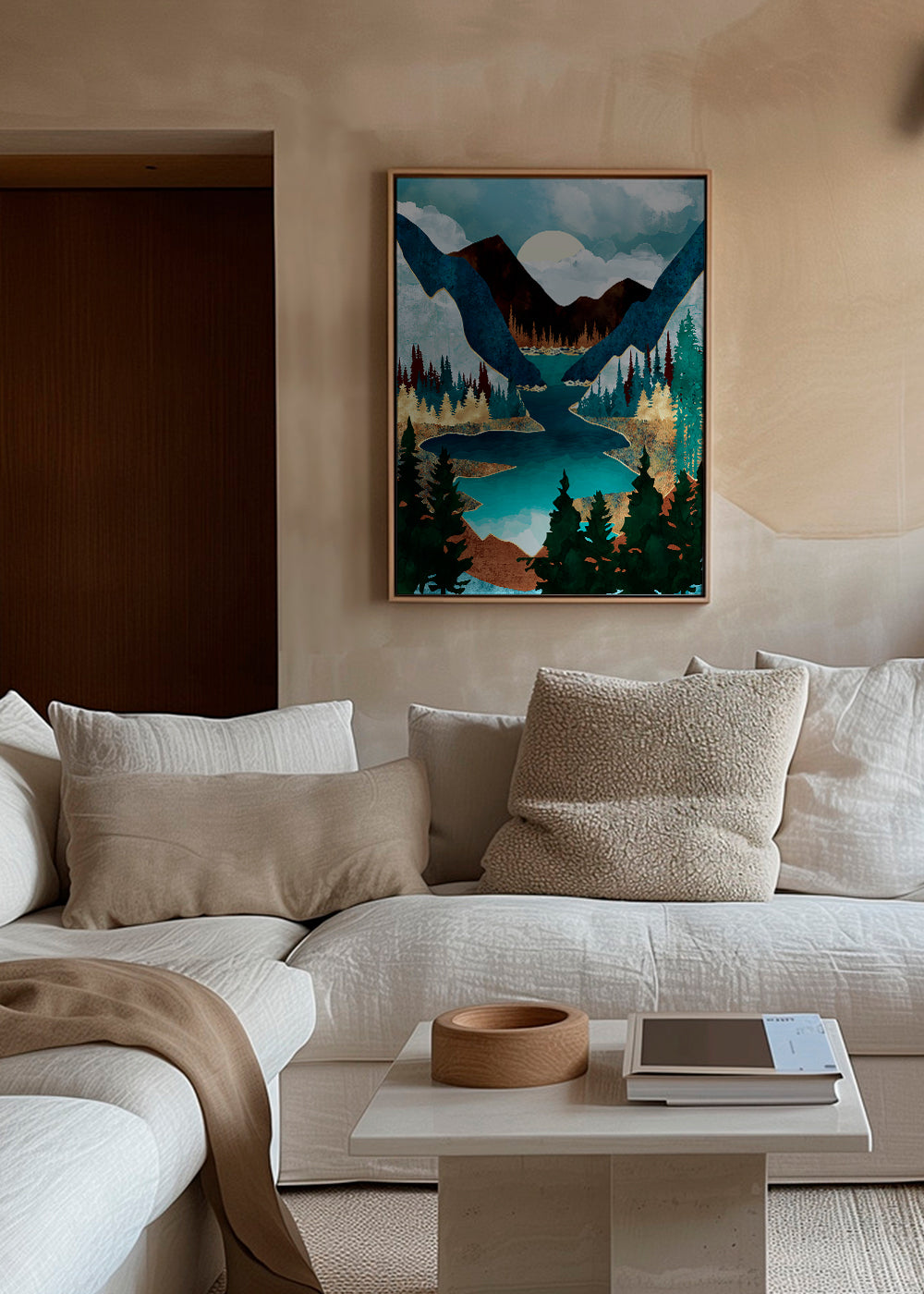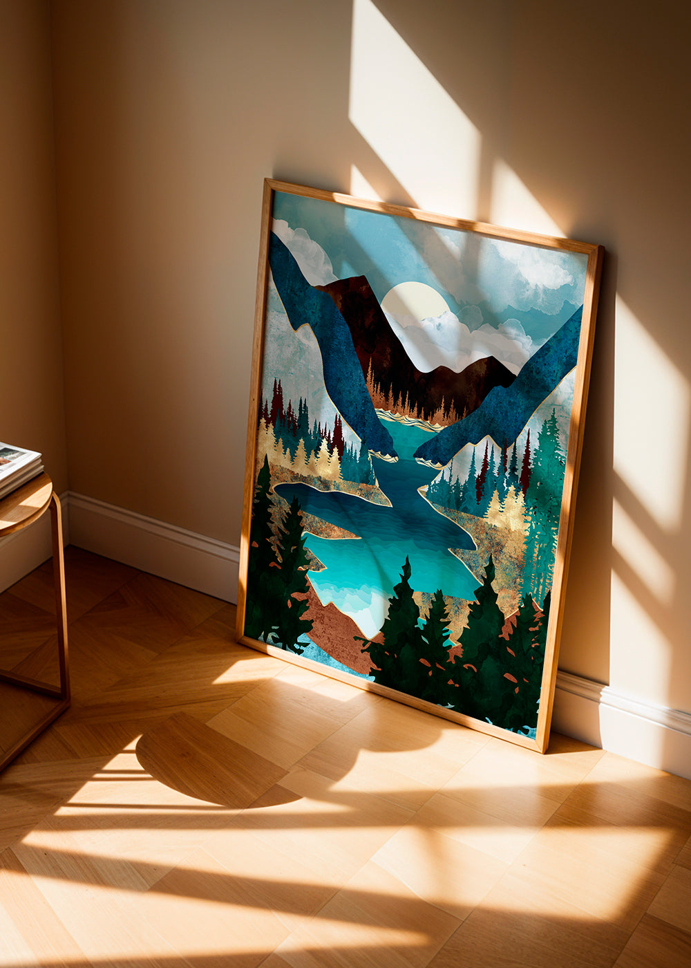This print from our landscape wall art collection, by SpaceFrog Designs, with blue, and in vertical position. Landscape prints are spectacular; pair them with texts and phrases to create cool wall compositions. Fill your walls with art.