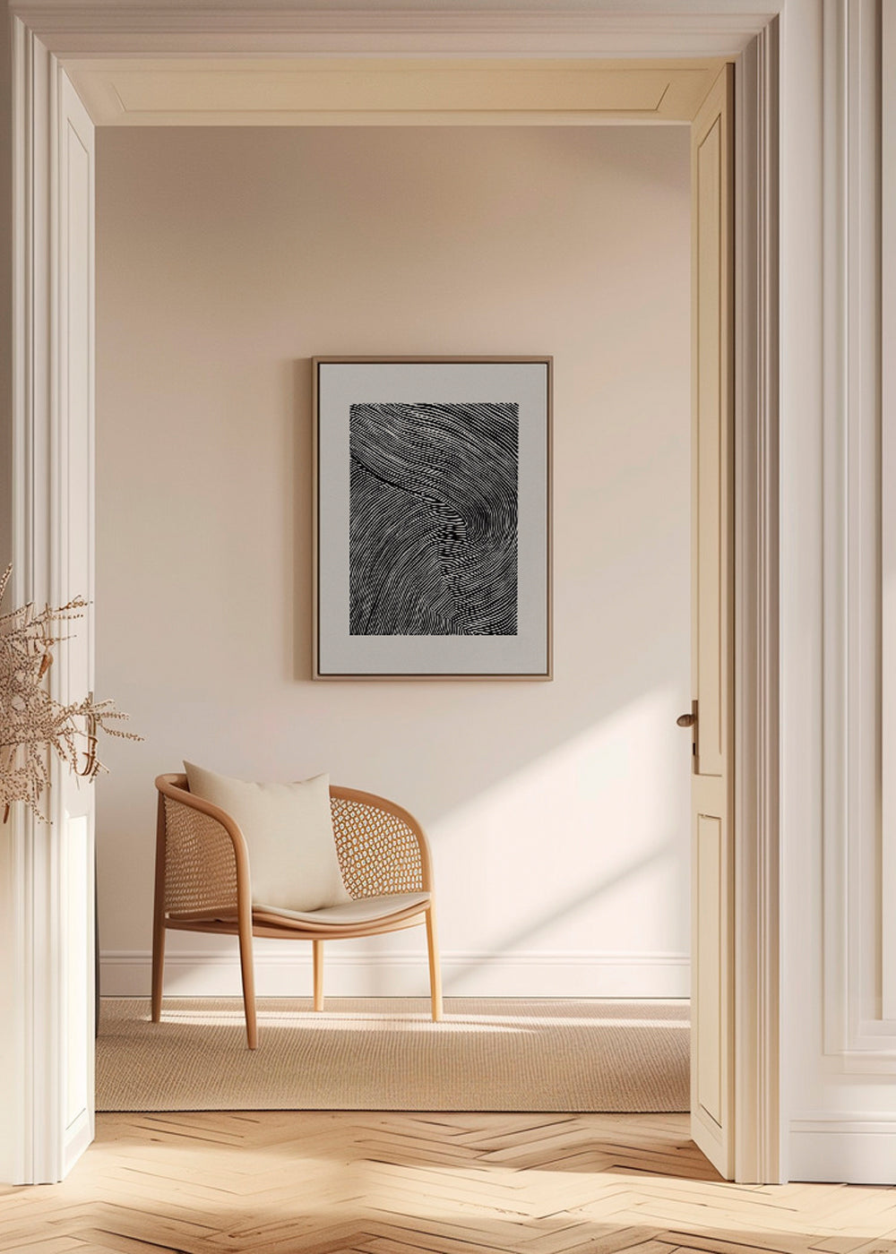 Stripes linocut Nº1 - Black and white scandinavian poster