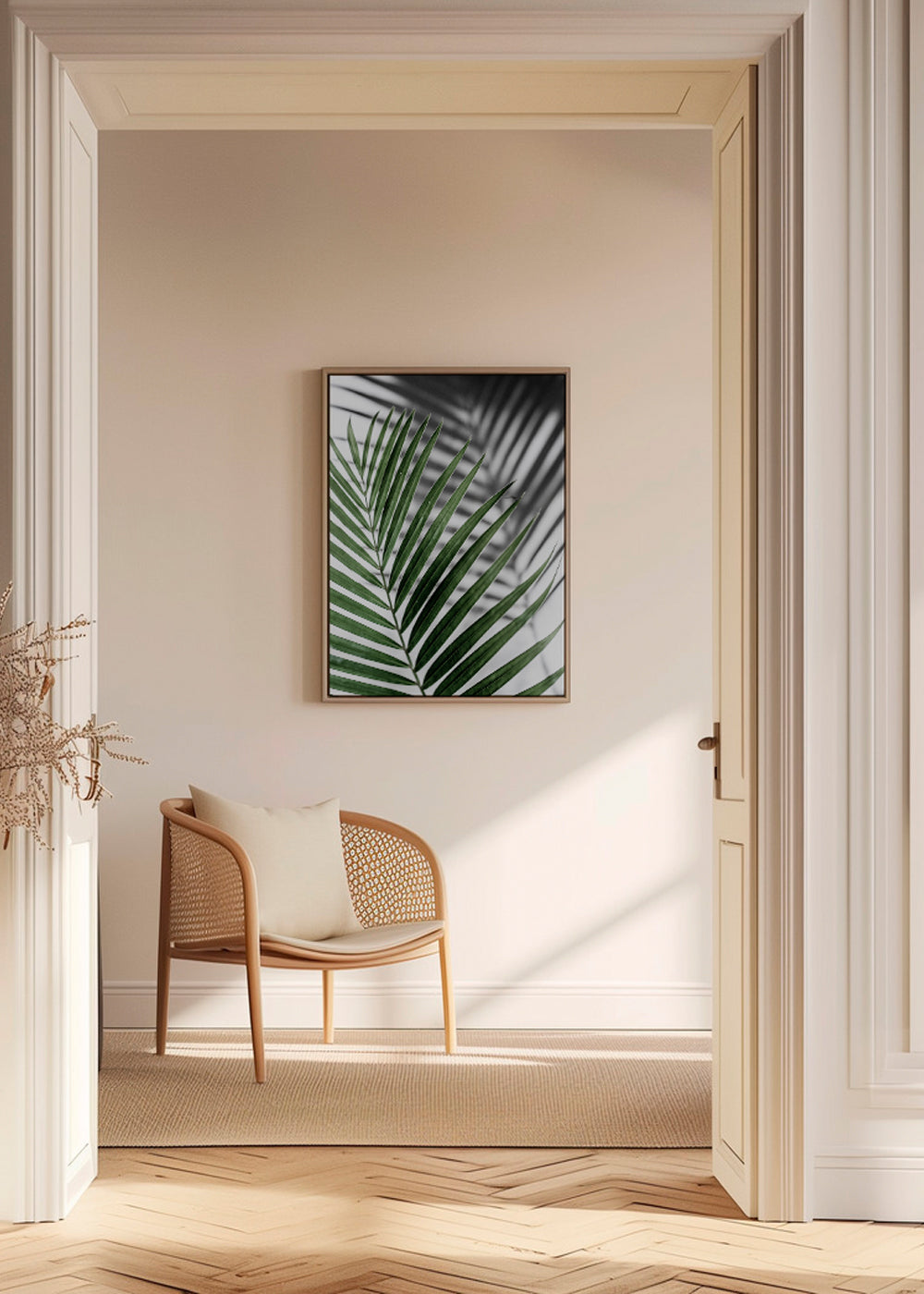 This poster from the palm tree prints collection, by creative artist Mareike Böhmer, with green tones, and perfect to hang vertically. Create a vertical garden by pairing this piece with other prints with flowers and plants. Pure art and design.